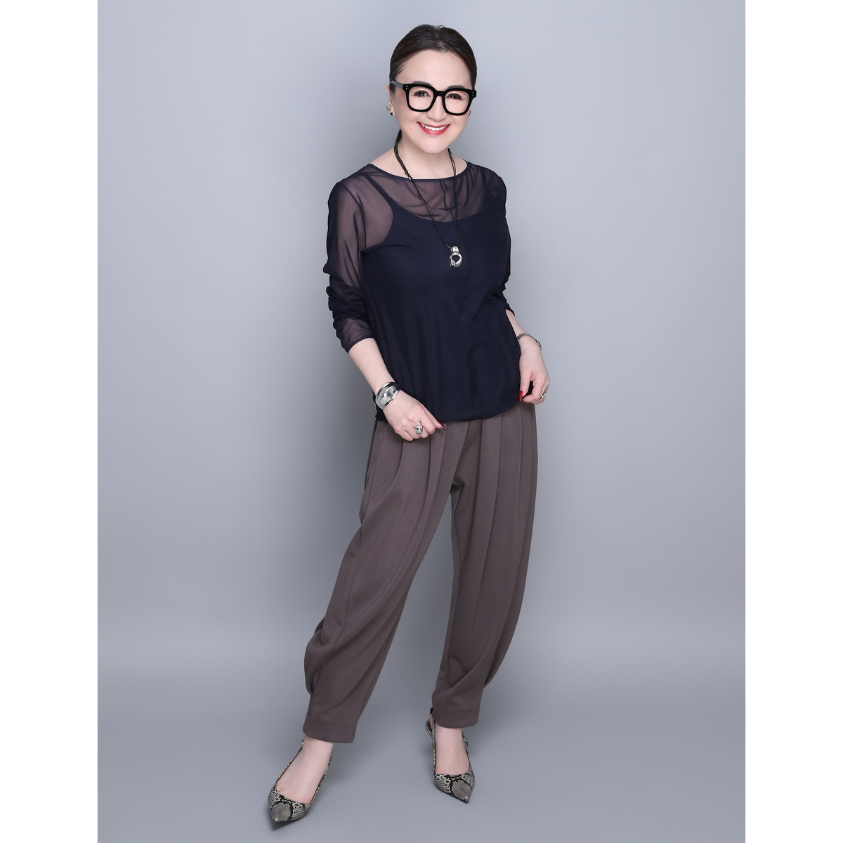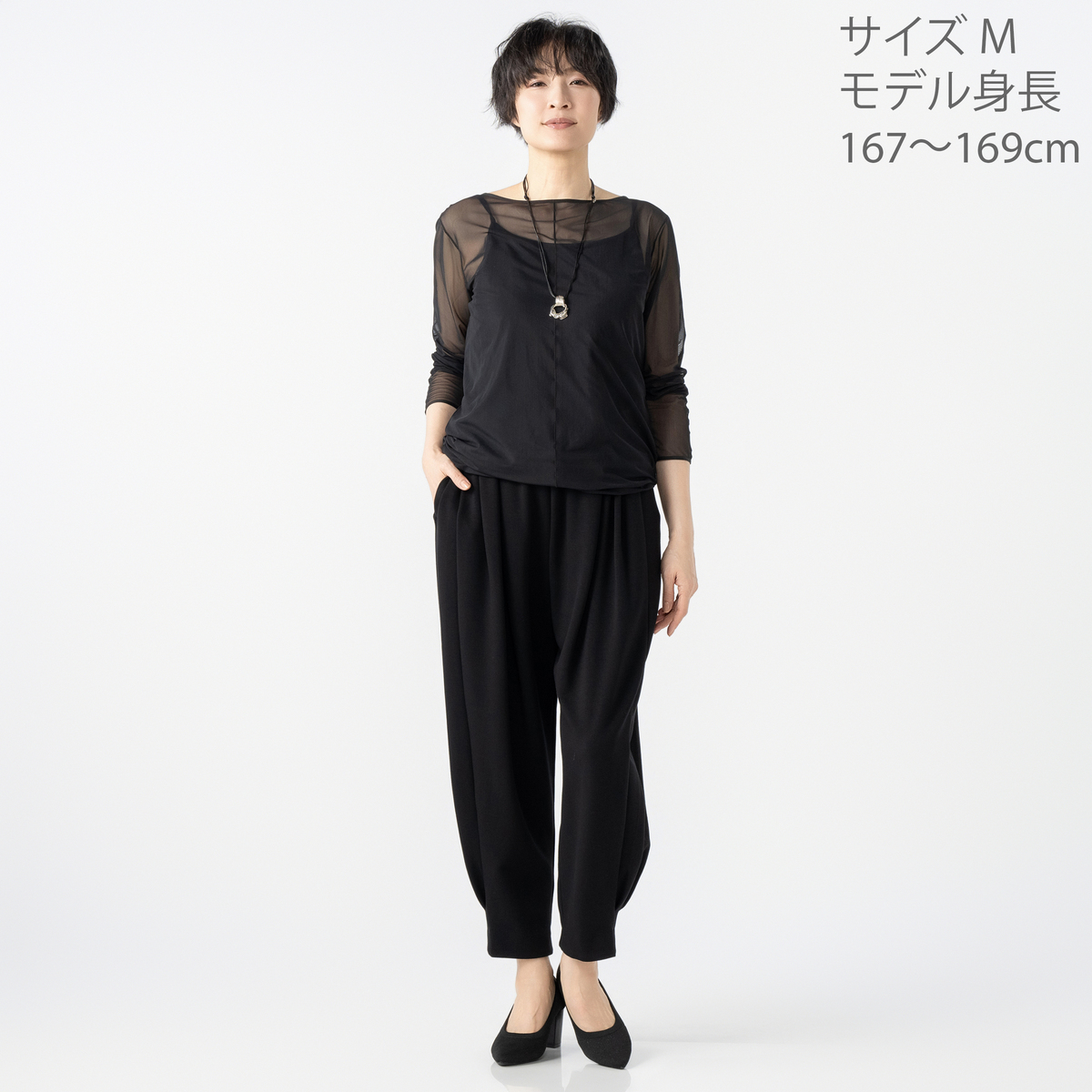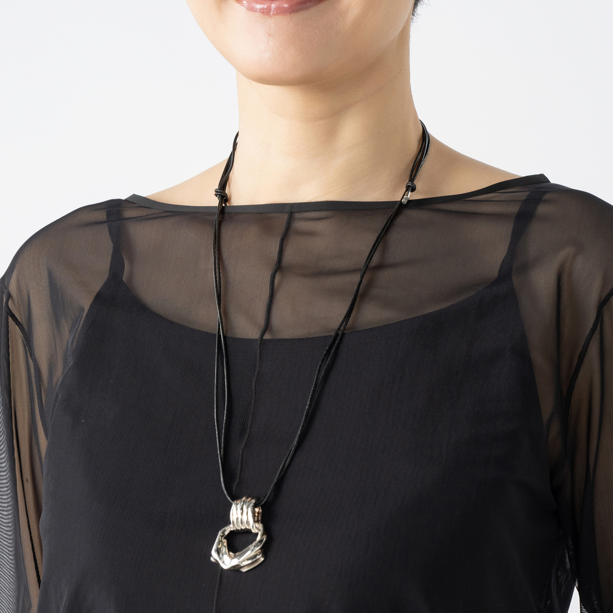 ANNE COQUINE定番のインナー付きチュールトップス。様々なコーデに活躍するシンプルなデザインです