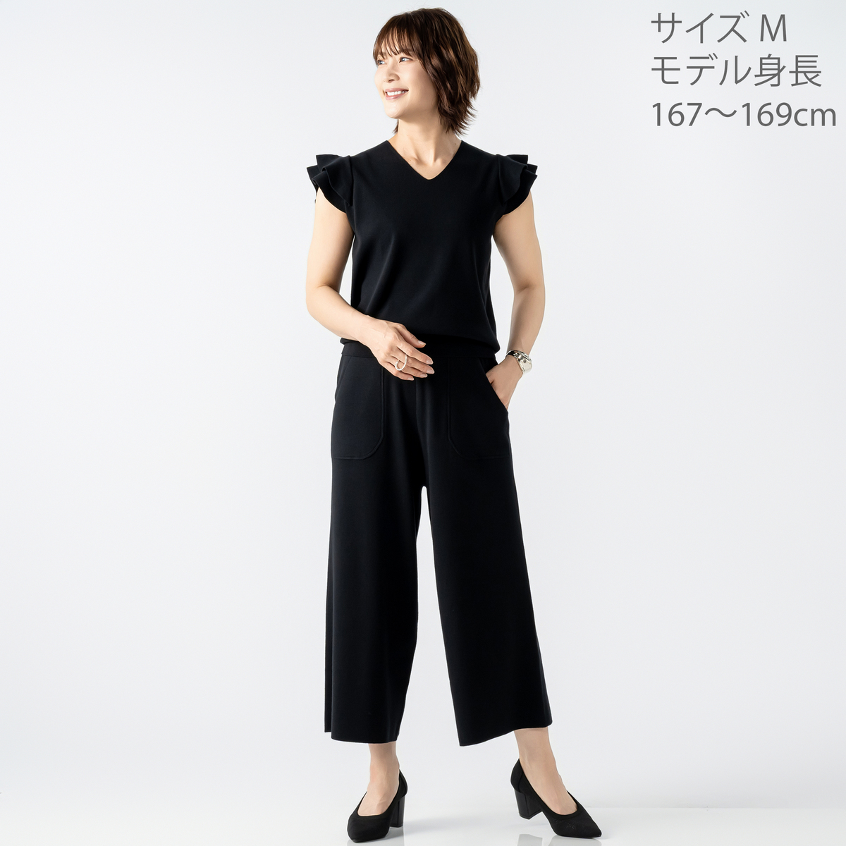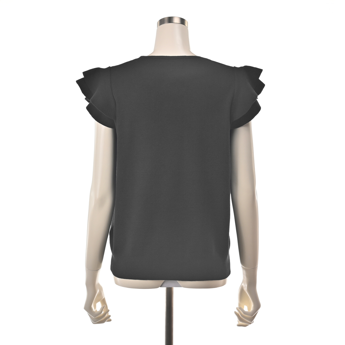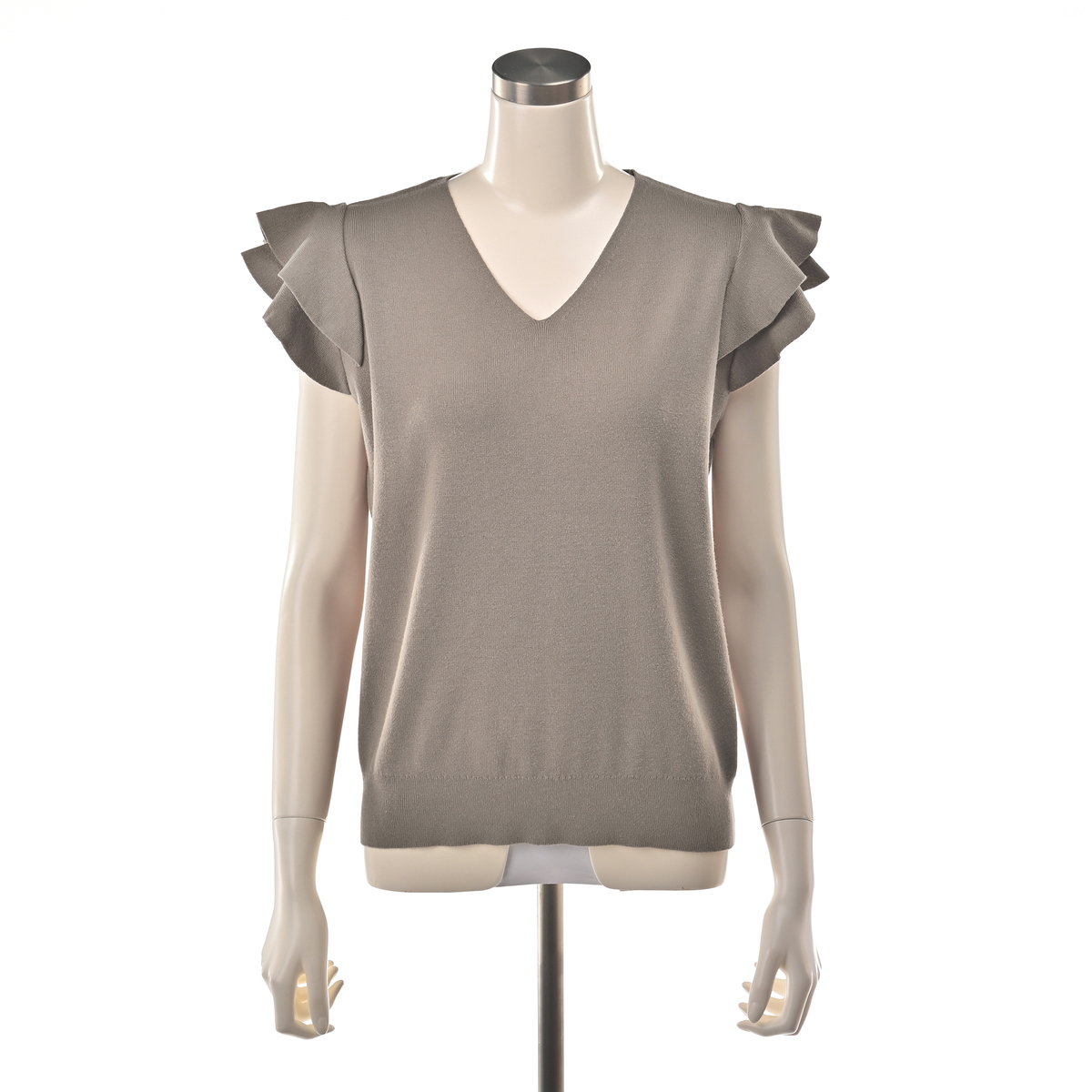 肩のフリルがさりげなく華やかさをプラス。日常の装いをアップグレードします