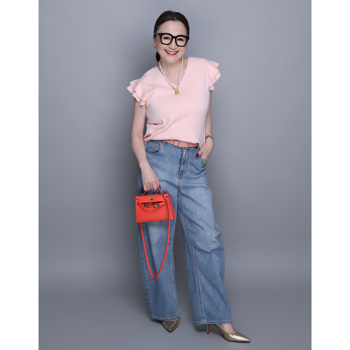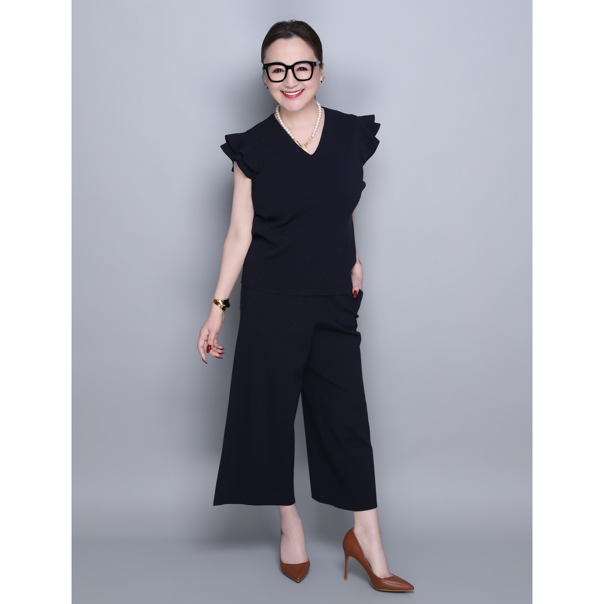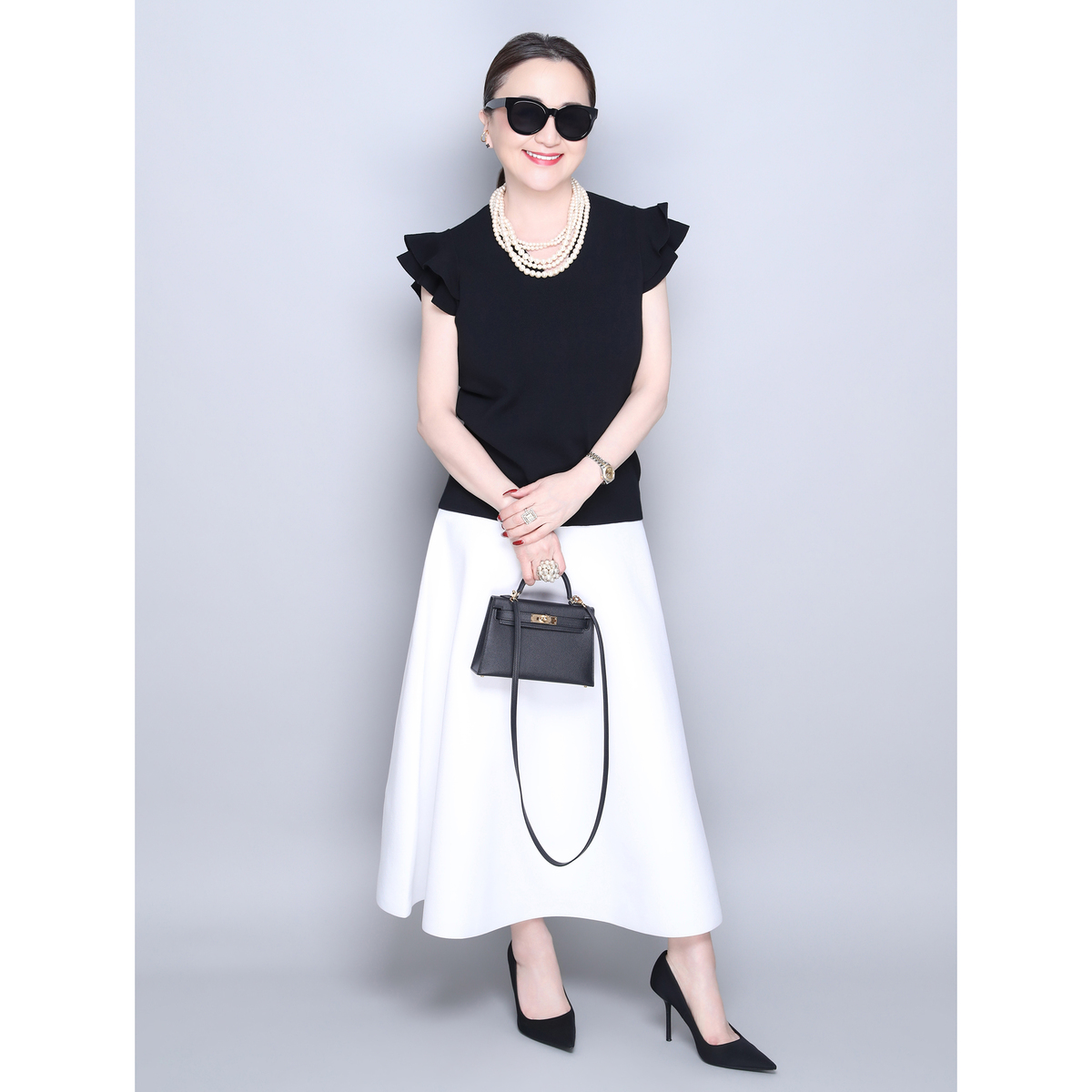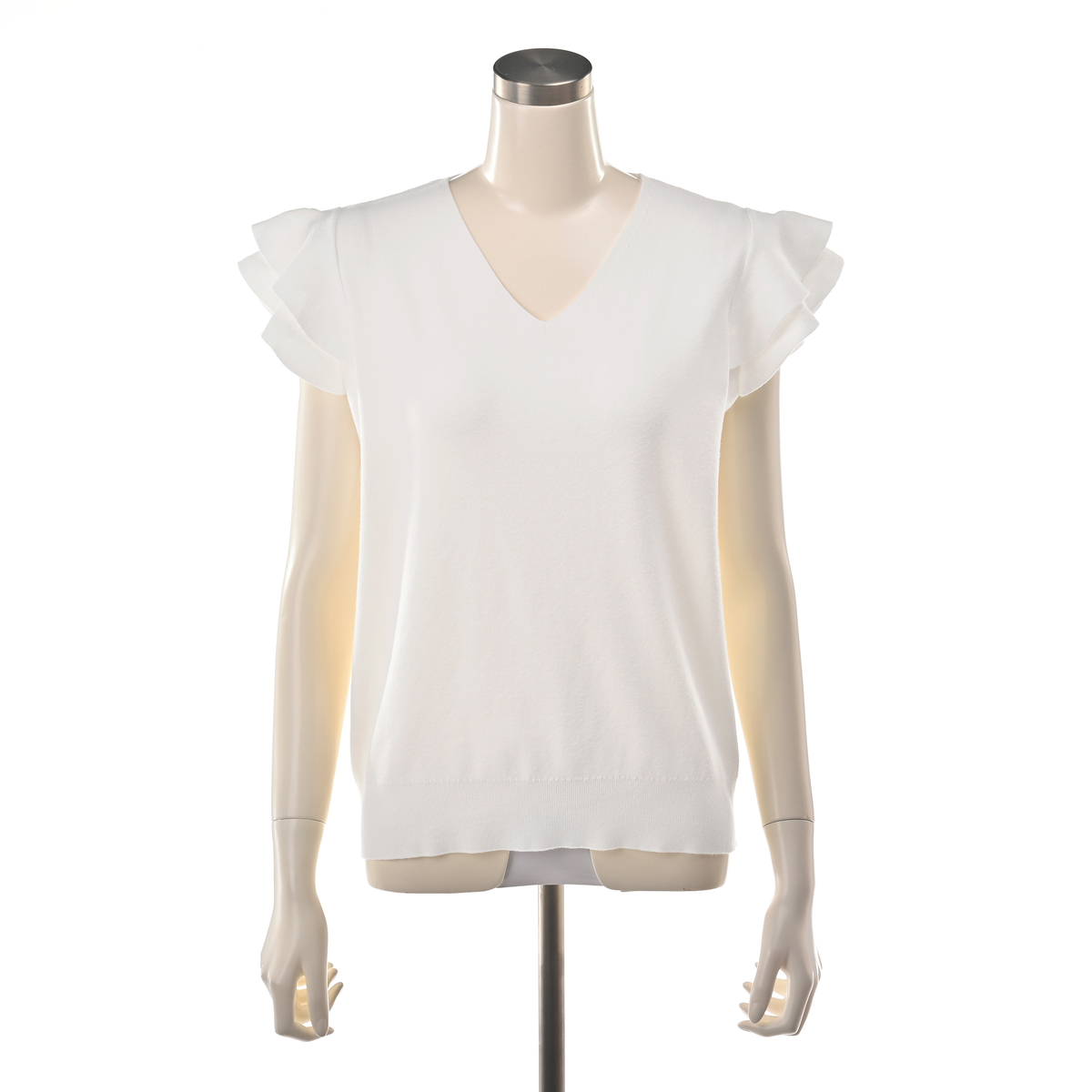 肩のフリルがさりげなく華やかさをプラス。日常の装いをアップグレードします