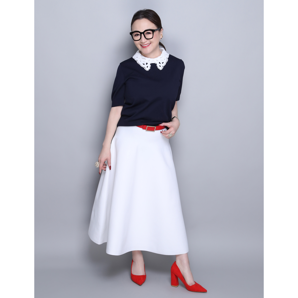 同素材のスカートと合わせればセットアップも可能。シンプルなボトムスと合わせて、きちんと感のあるコーディネートにも活躍します