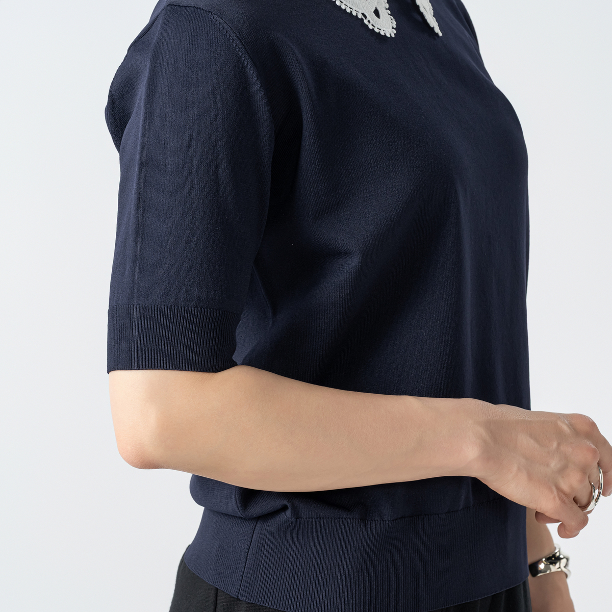 No. 753894 ANNE COQUINE レース襟付きニット半袖トップス