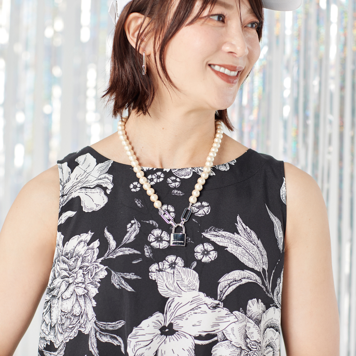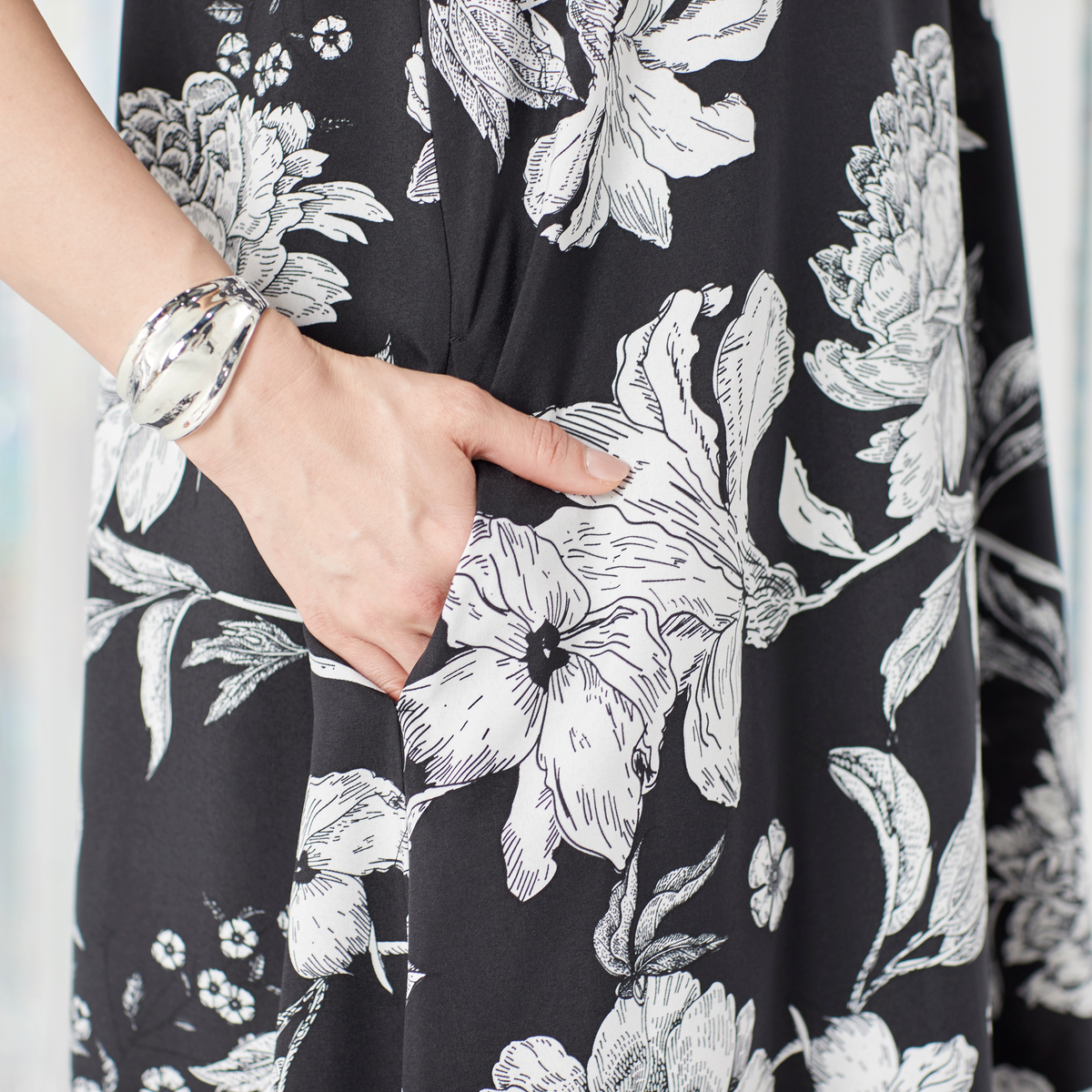 ストンとしたシルエットは、たっぷりとした裾回しで体型を上手にカバー。肩線には、下着のズレを防止するスナップ紐を内蔵しました