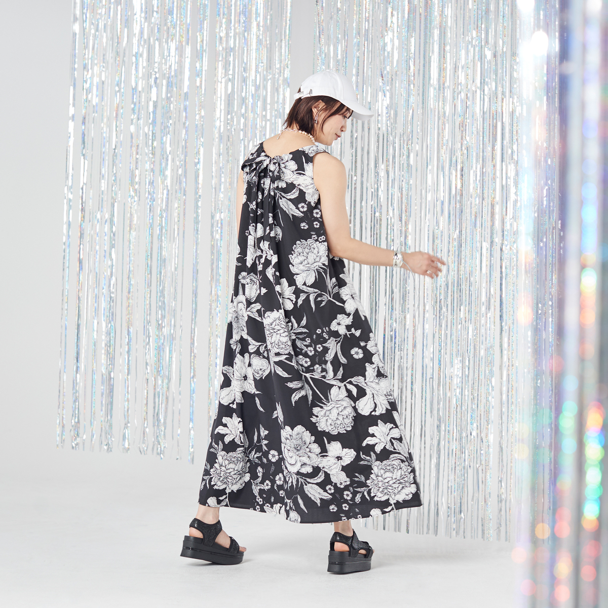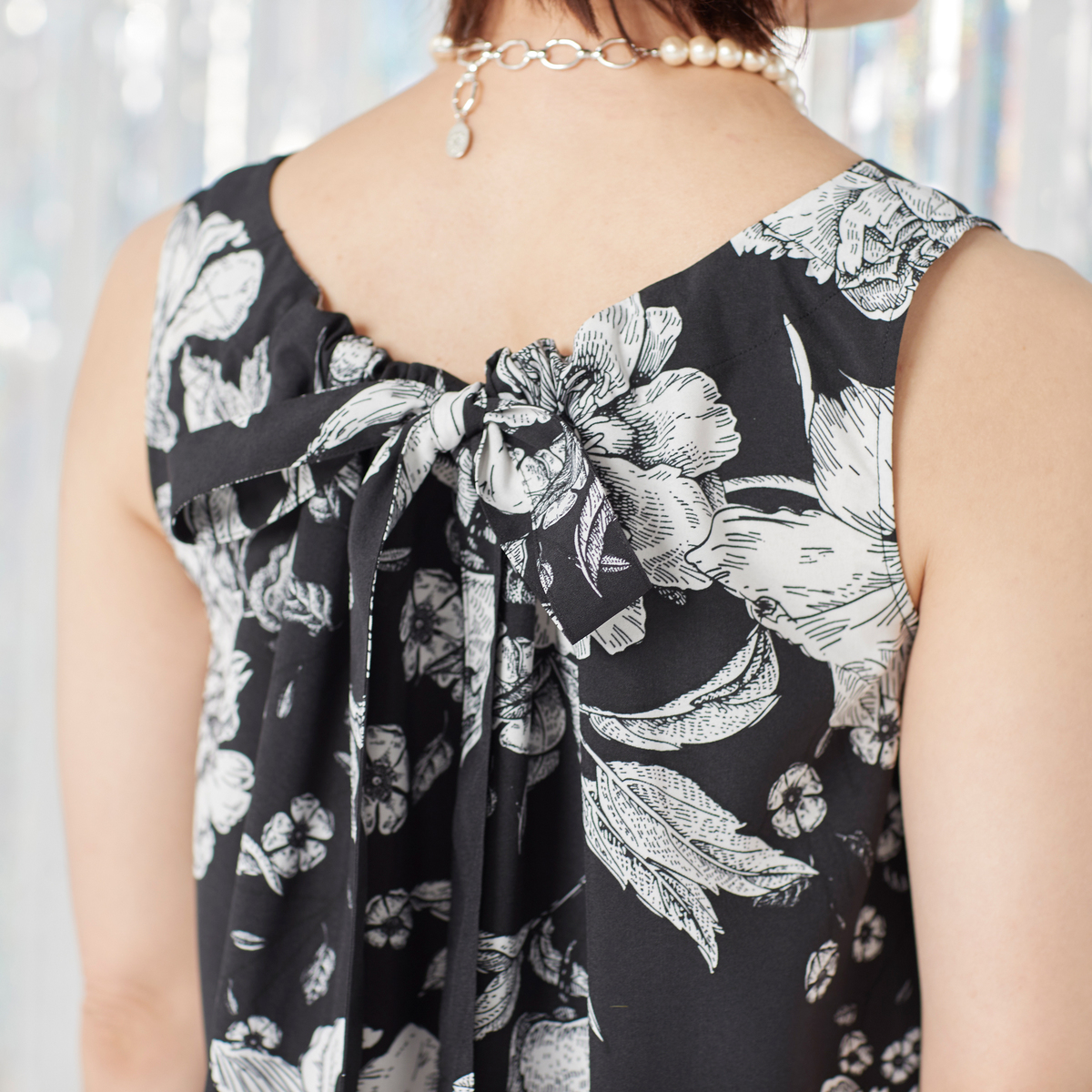 前後どちらでも着られる、軽やかな2WAYワンピース。ボートネックは、後ろのギャザーネックラインでお好みの下がり具合に調整可能。リボンをフロントにすれば、フェミニンで華やかに着こなしていただけます