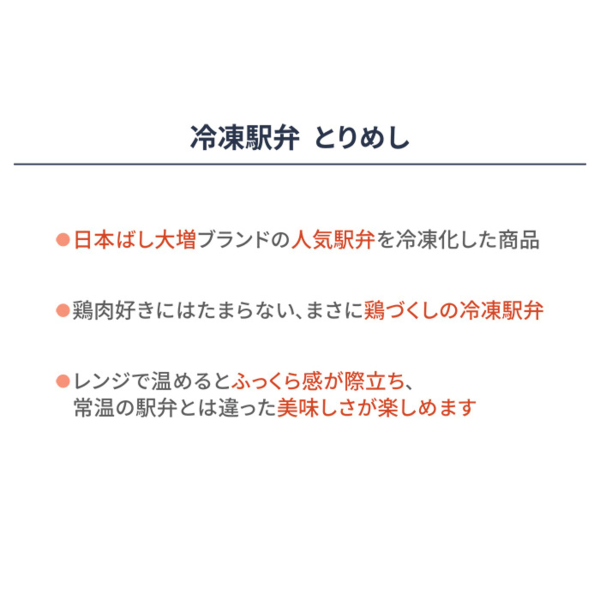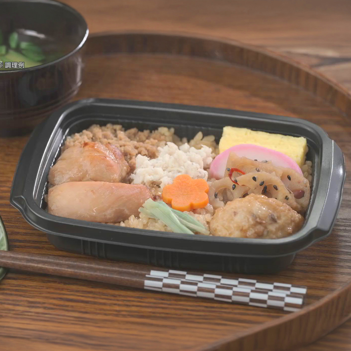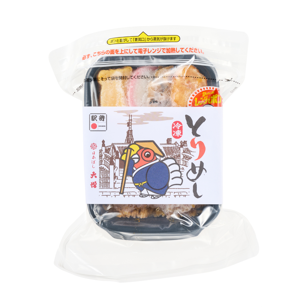 [アレルギー物質特定原材料8品目] 卵、小麦、乳 [内容量] 1人前x5個セット [賞味期限] 出荷時点で賞味期限まで90日以上ある商品をお届けします [保存方法] 開封前:要冷凍(-18℃以下)で保存してください 開封後:開封後は賞味期限にかかわらずお早めにお召し上がりください [お召し上がり方] 掛紙をはずし、開封せず500W4分または600W3分20秒加熱してください。加熱後冷たい場合は10秒ずつ追加過熱してください [注意事項] ※ご家庭の冷凍庫は温度変動が大きい為、賞味期限内であってもなるべく早めにお召し上がりください [原料原産地] 鶏だしご飯(国産米) [原産国] 日本 [原材料] 鶏だしご飯(国産米)、軟骨入り鶏つくね揚和風たれ和え、鶏照焼、玉子焼、蒲鉾、蓮根金平、鶏そぼろ味噌煮、蒸し鶏塩だれ和え、せり漬、人参煮/加工でん粉、調味料(アミノ酸等)、トレハロース、グリシン、pH調整剤、酢酸(Na)、リン酸塩(Na)、増粘剤(加工でん粉、増粘多糖類)、酒精、 着色料(カラメル、アナトー、カルミン酸)、焼成Ca、酸化防止剤(V.C)、酸味料、クエン酸Na、甘味料(甘草)、乳化剤、V.B1、保存料(ソルビン酸K)、ショ糖エステル、香料、(一部に小麦・卵・乳成分・ごま・さば・大豆・鶏肉を含む)