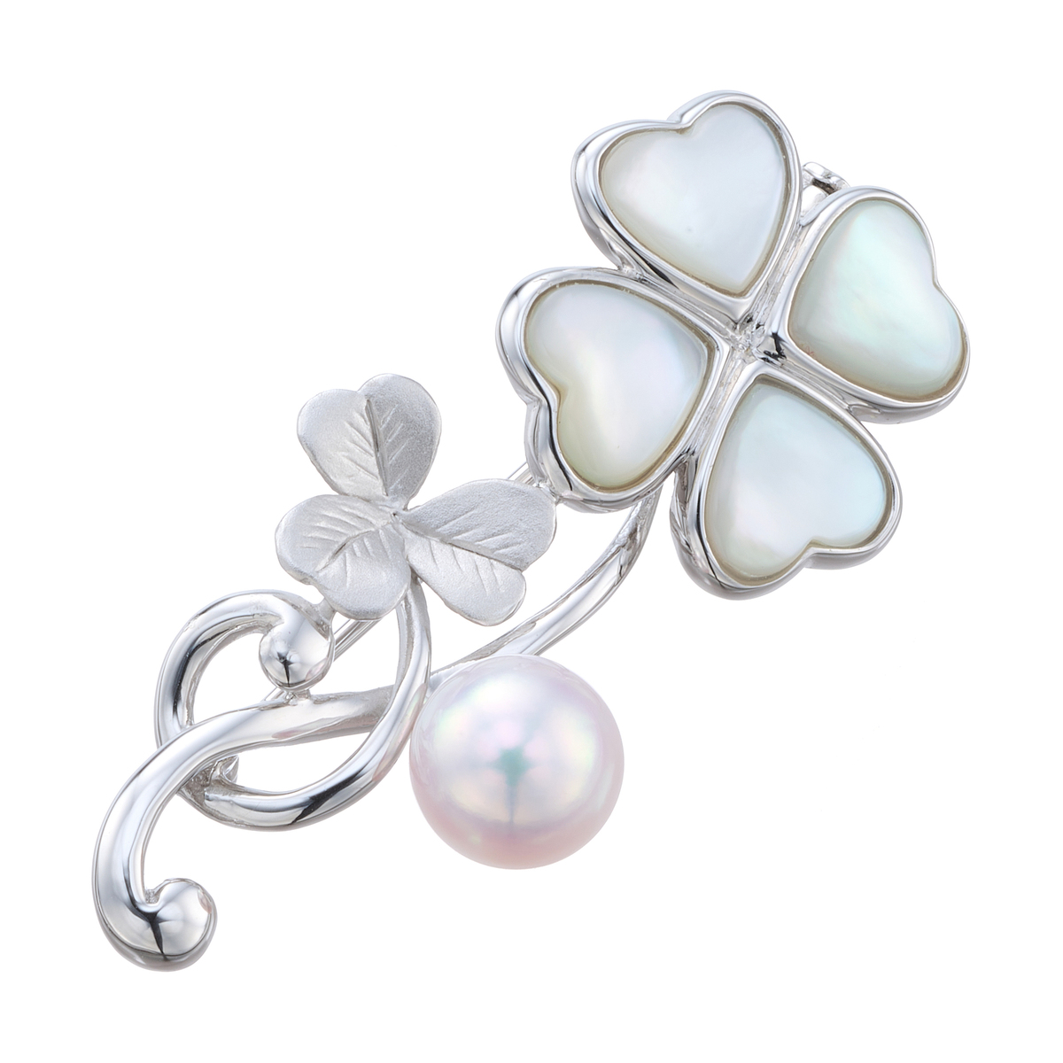 テリが魅力的なアコヤ真珠を使用したブローチ。繊細な輝きが装いに華やかさを添えます