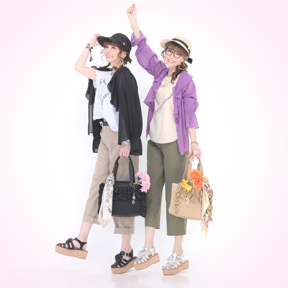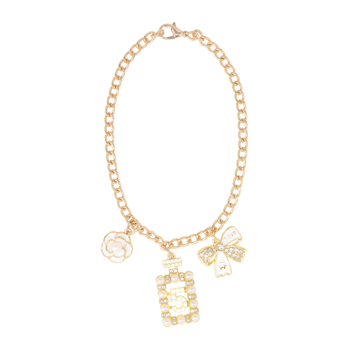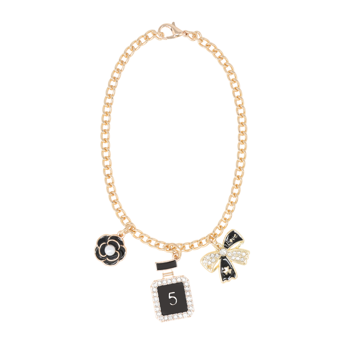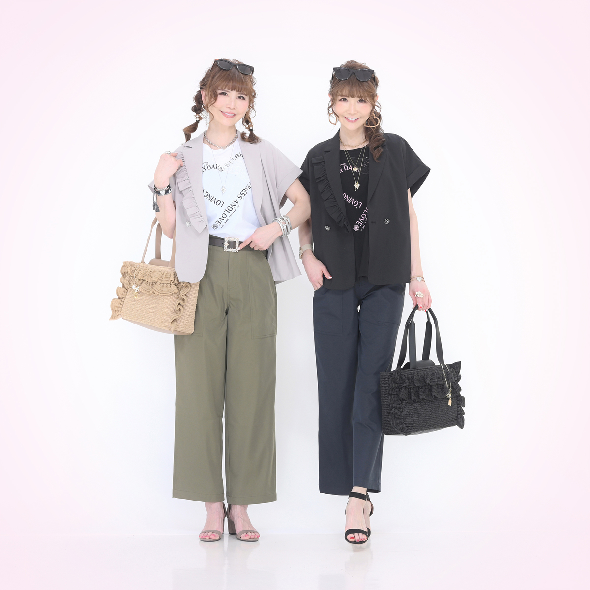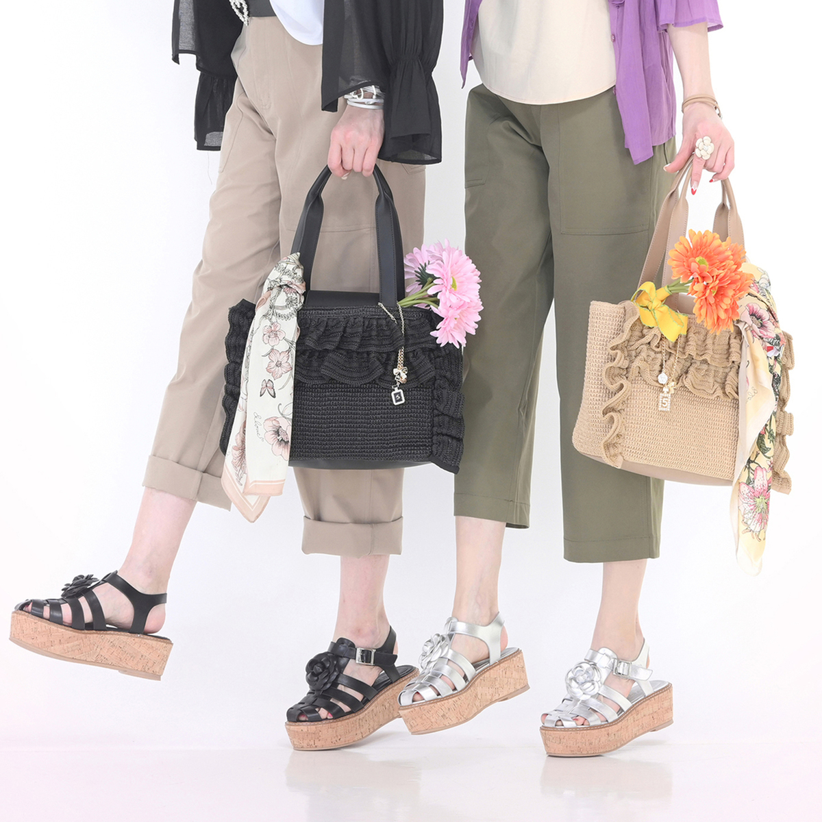 口まわりのフリルで&LOVEらしさを表現したバッグ。フリルは全体に均等に入れることで甘さを抑え、上品な印象にまとめています。フロントには香水瓶やリボン、カメリアのチャームを添え、持つだけで気分が上がる遊び心を効かせています
