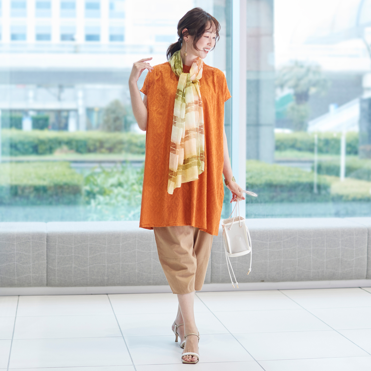 No. 753943 Pomelo 綿混カットジャガードチュニックブラウス