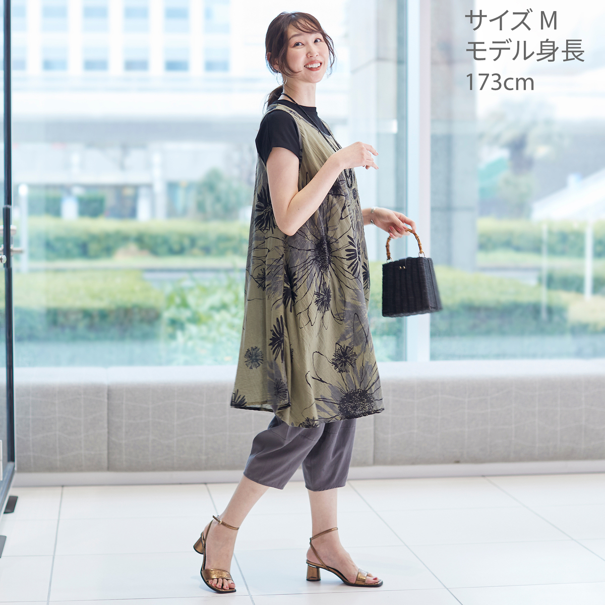 No. 753945 Pomelo 手書き風プリントコード刺繍チュニックワンピース