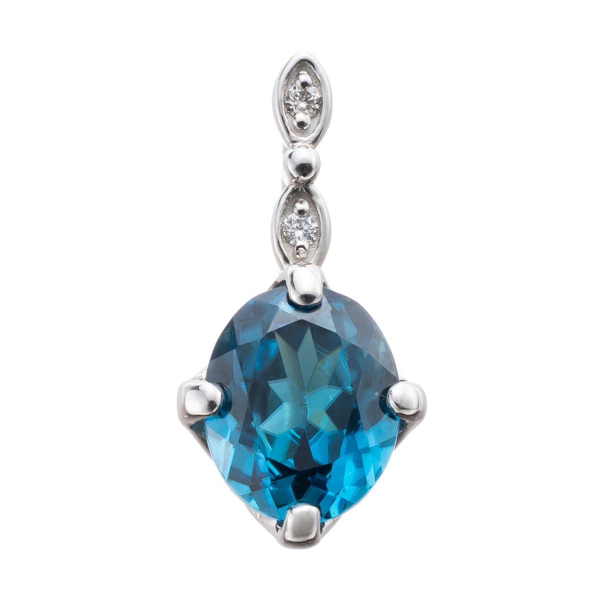 1.00ctUPのブルージルコンが放つきらめきを、草花をイメージしたデザインで表現しました。美しいきらめきが胸元を華やかに彩るペンダントヘッドです