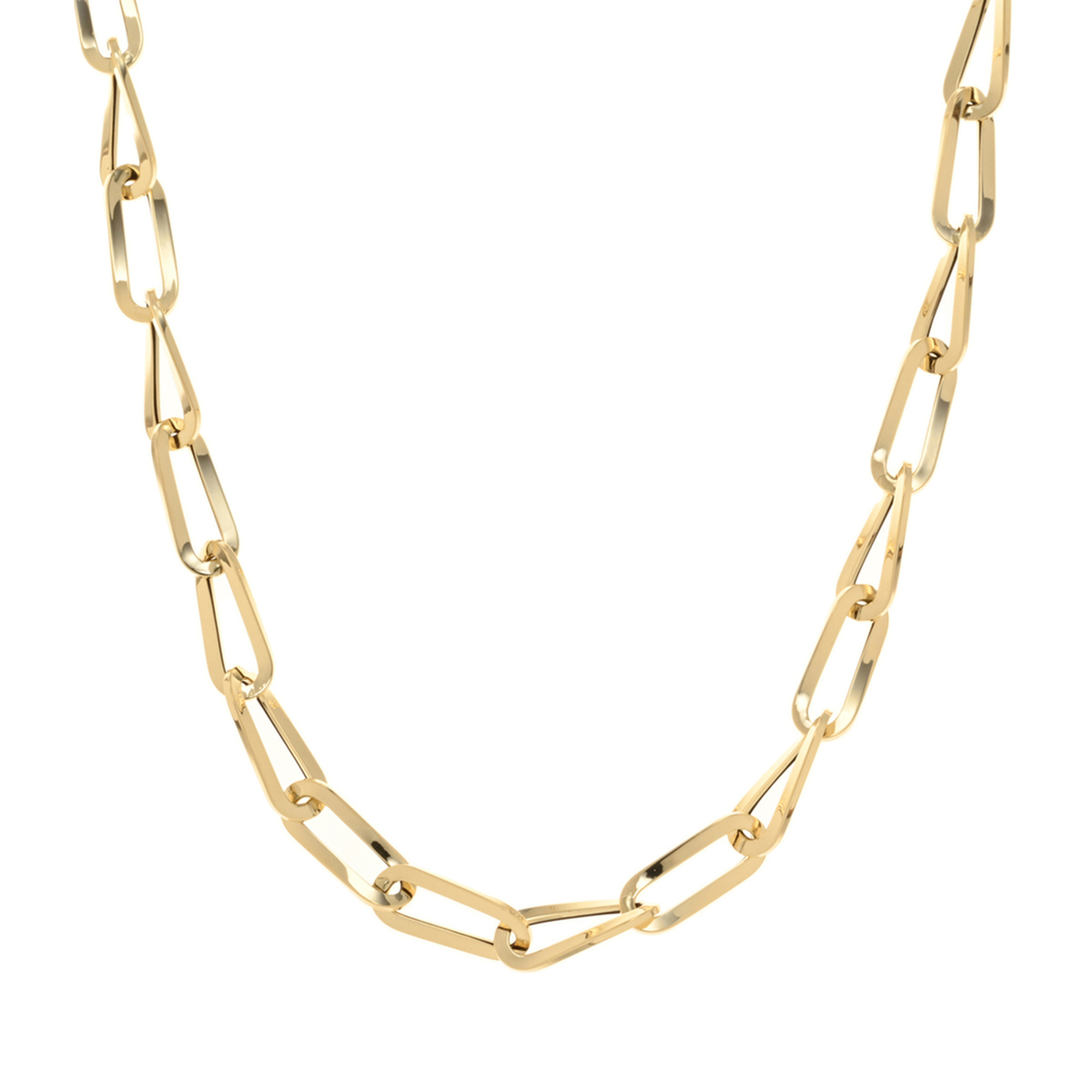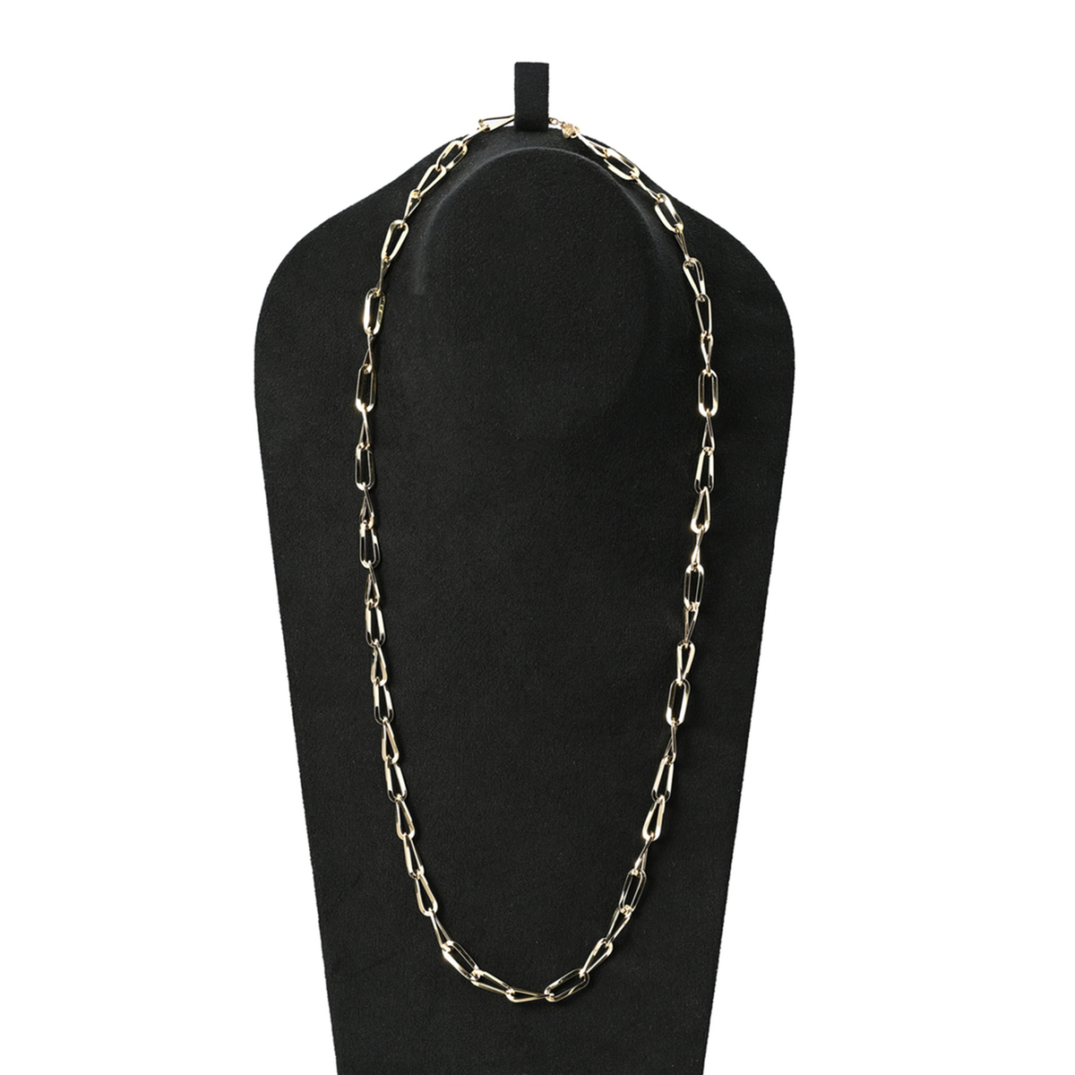 シンプルながらもスタイリッシュなチェーンネックレス。丸みを帯びたパーツを少しツイストさせて角度をつけて規則的に繋げ、より煌めくように仕上げました