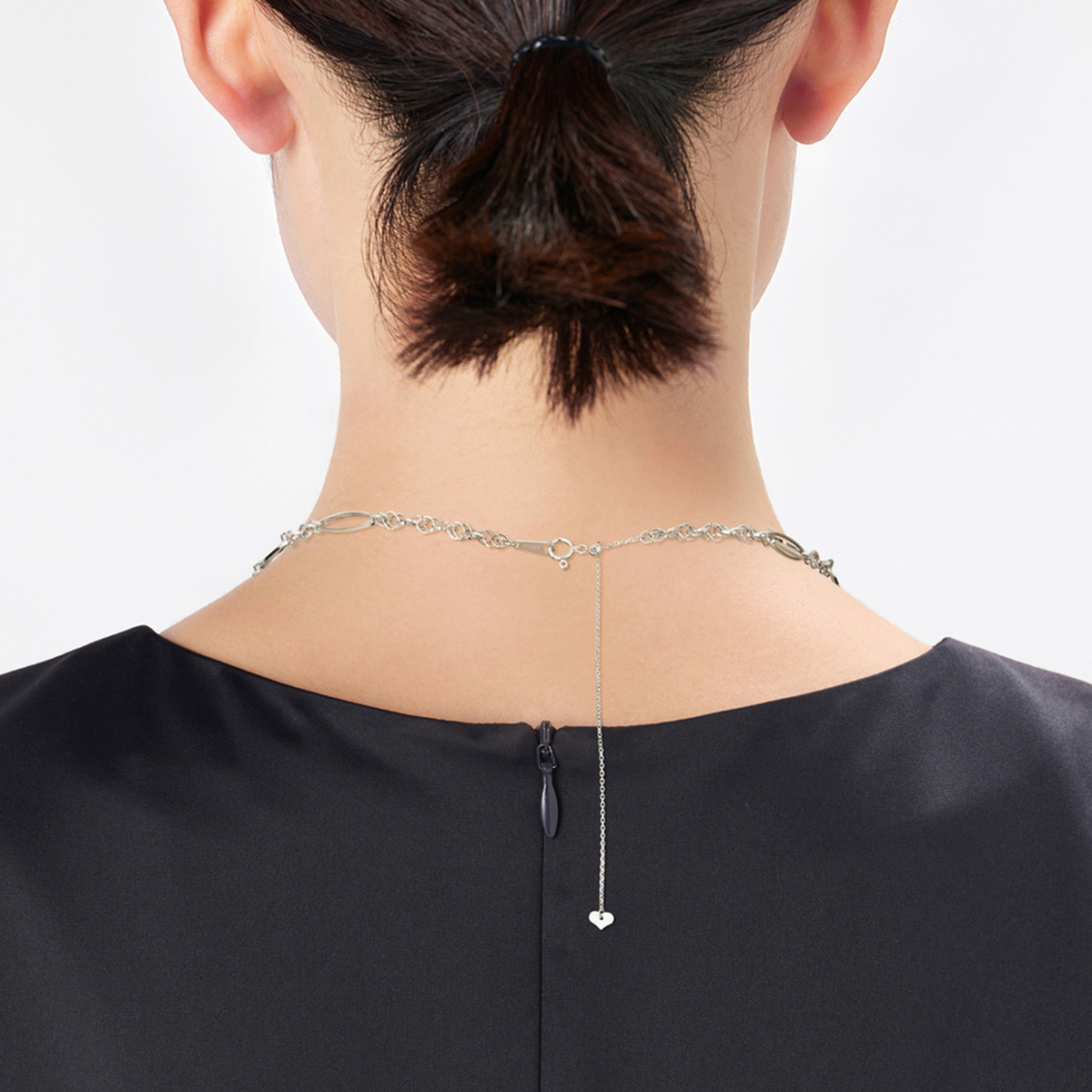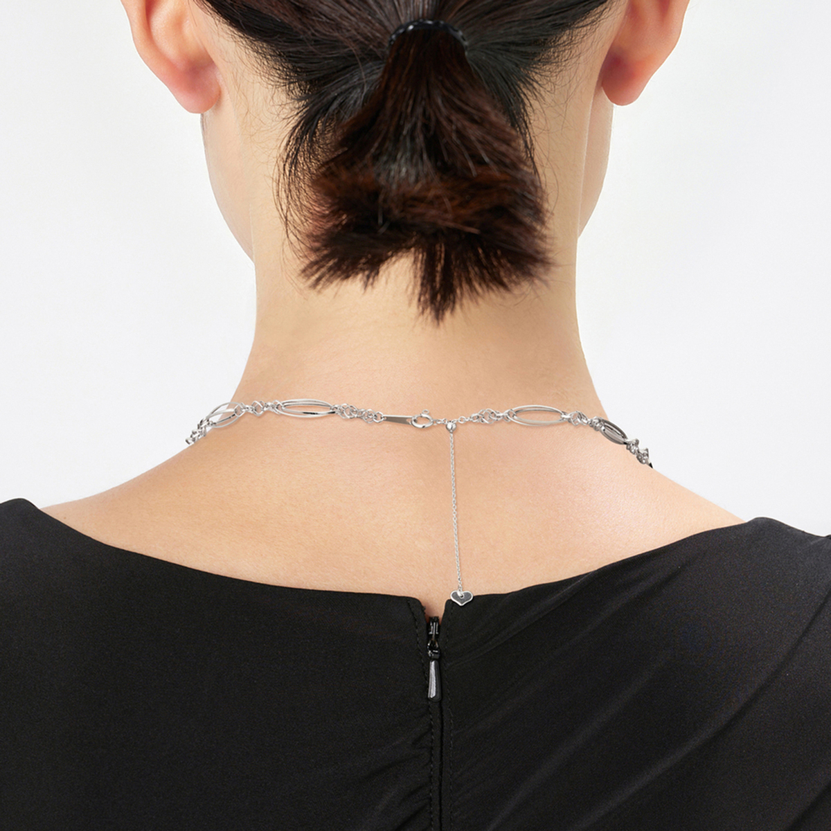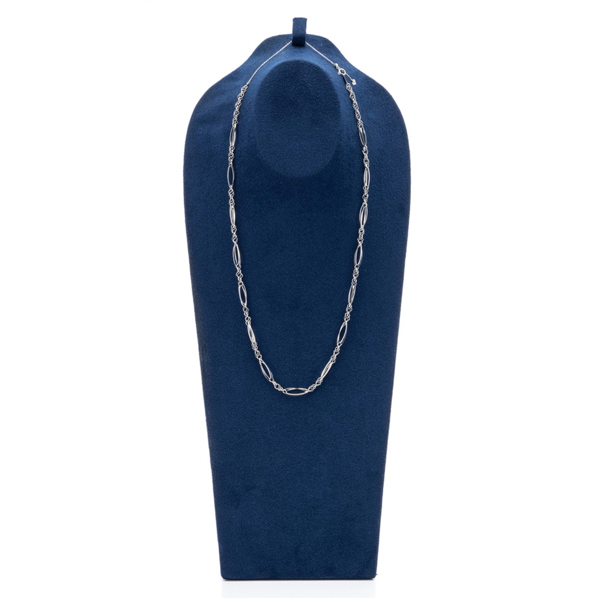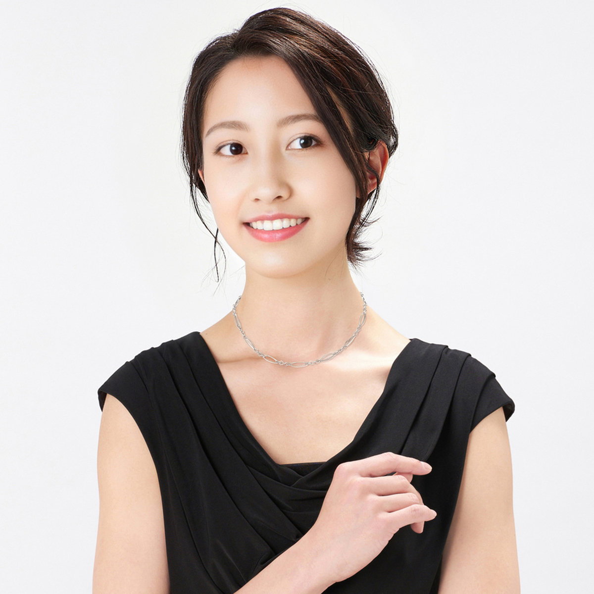 マーキス型とスクエア型のパーツをリズミカルに組合せたネックレス。マーキスパーツをダブルに重ね、スクエアパーツの組み方を工夫することで、立体的に仕上げました。ほどよいボリューム感がありつつも気品のあるデザインで、純プラチナの艶やかな輝きとともにお楽しみいただけます