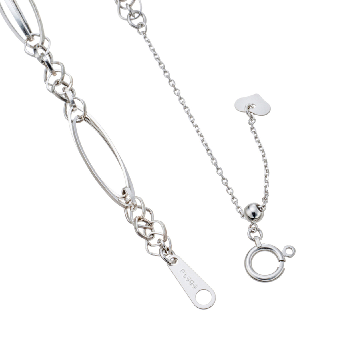 [地金] プラチナ999 総重量(約) 40+5cm:4.5g 50+10cm:5.9g 長さ(約) 40.0〜45.0cm 50.0〜60.0cm 幅(約) 大:5.0mm 小:3.5mm チェーンの形状 デザイン 留具の形状 引き輪 アジャスターの有無 有(スライド式) ■受注発注商品のためデザイン・価値に影響のない範囲で仕様が変わる場合がございます ■素材の大きさ・形・色合い、製品のサイズは1点1点多少異なります 【日本製】