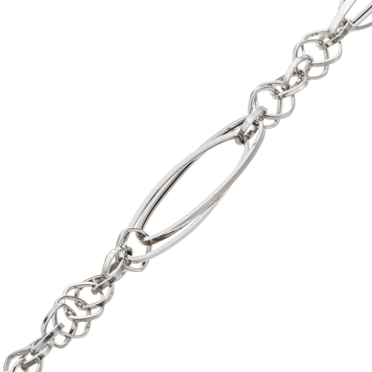 マーキス型とスクエア型のパーツをリズミカルに組合せたブレスレット。マーキスパーツをダブルに重ね、スクエアパーツの組み方を工夫することで、立体的に仕上げました。ほどよいボリューム感がありつつも気品のあるデザインで、純プラチナの艶やかな輝きとともにお楽しみいただけます
