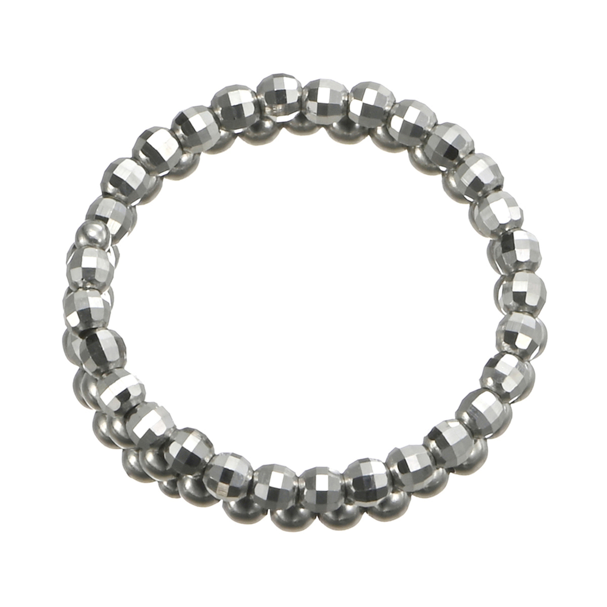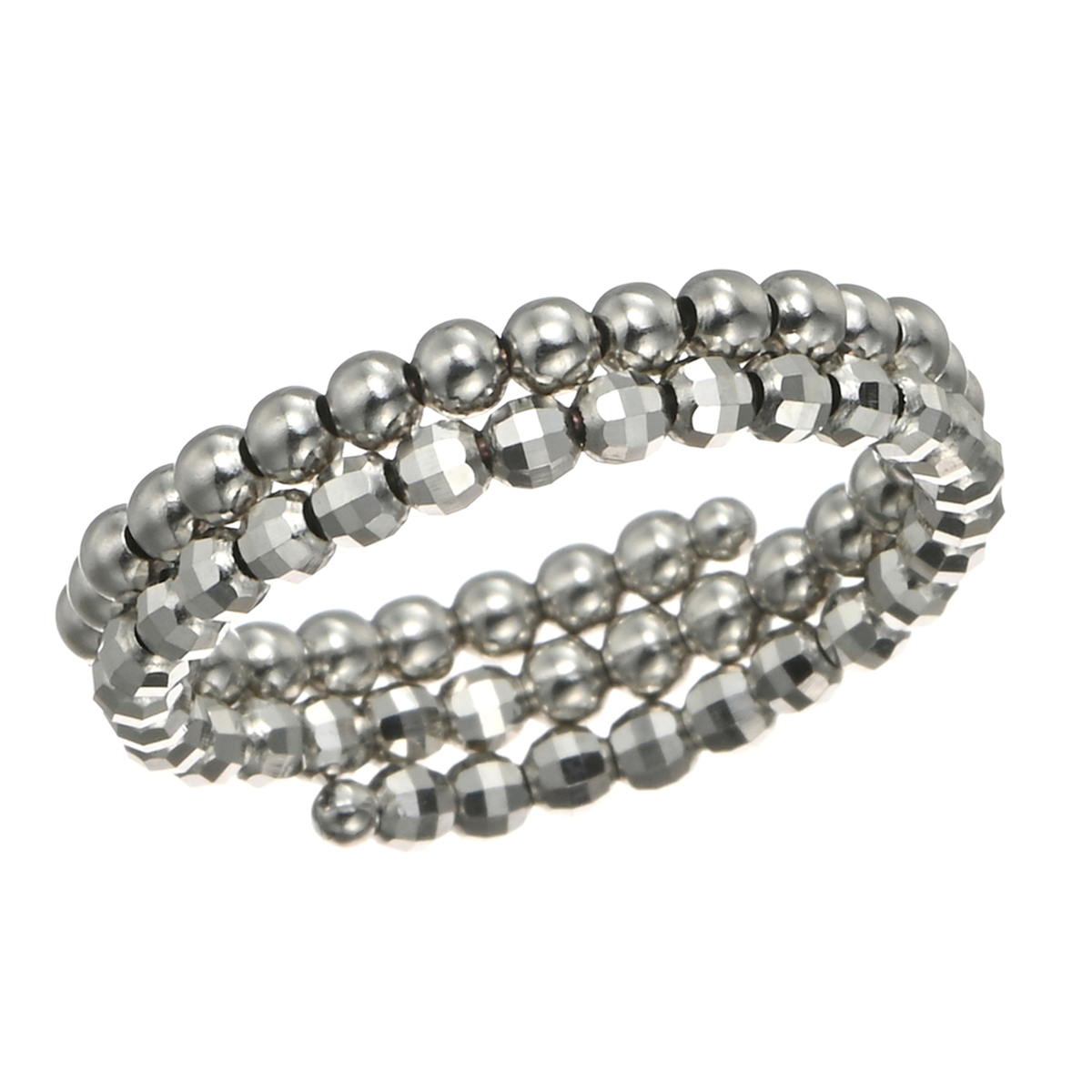 ミラーボールとプレーンボールの2種類を連ねたフリーサイズリング。中芯には形状記憶合金を使用し、純プラチナで仕立てています。シンプルに指に馴染むので、お手持ちのリングとも相性よくお使いいただけます