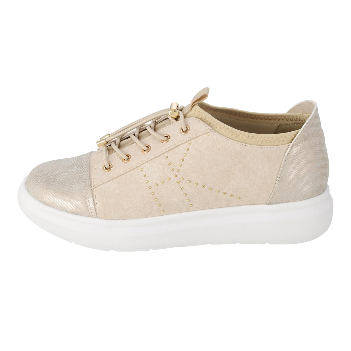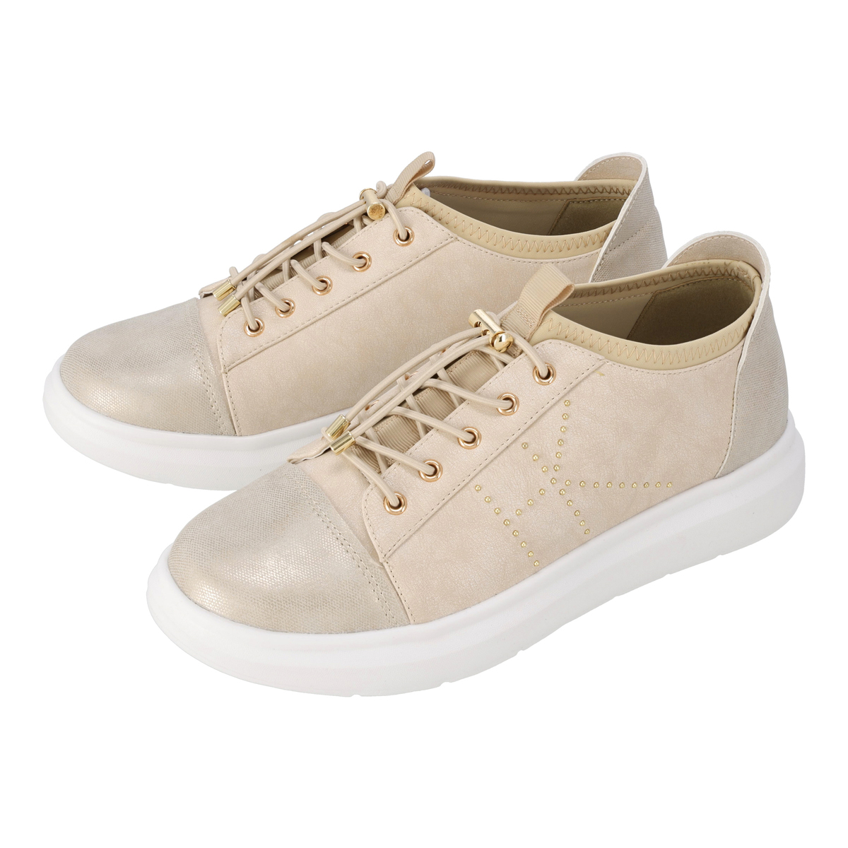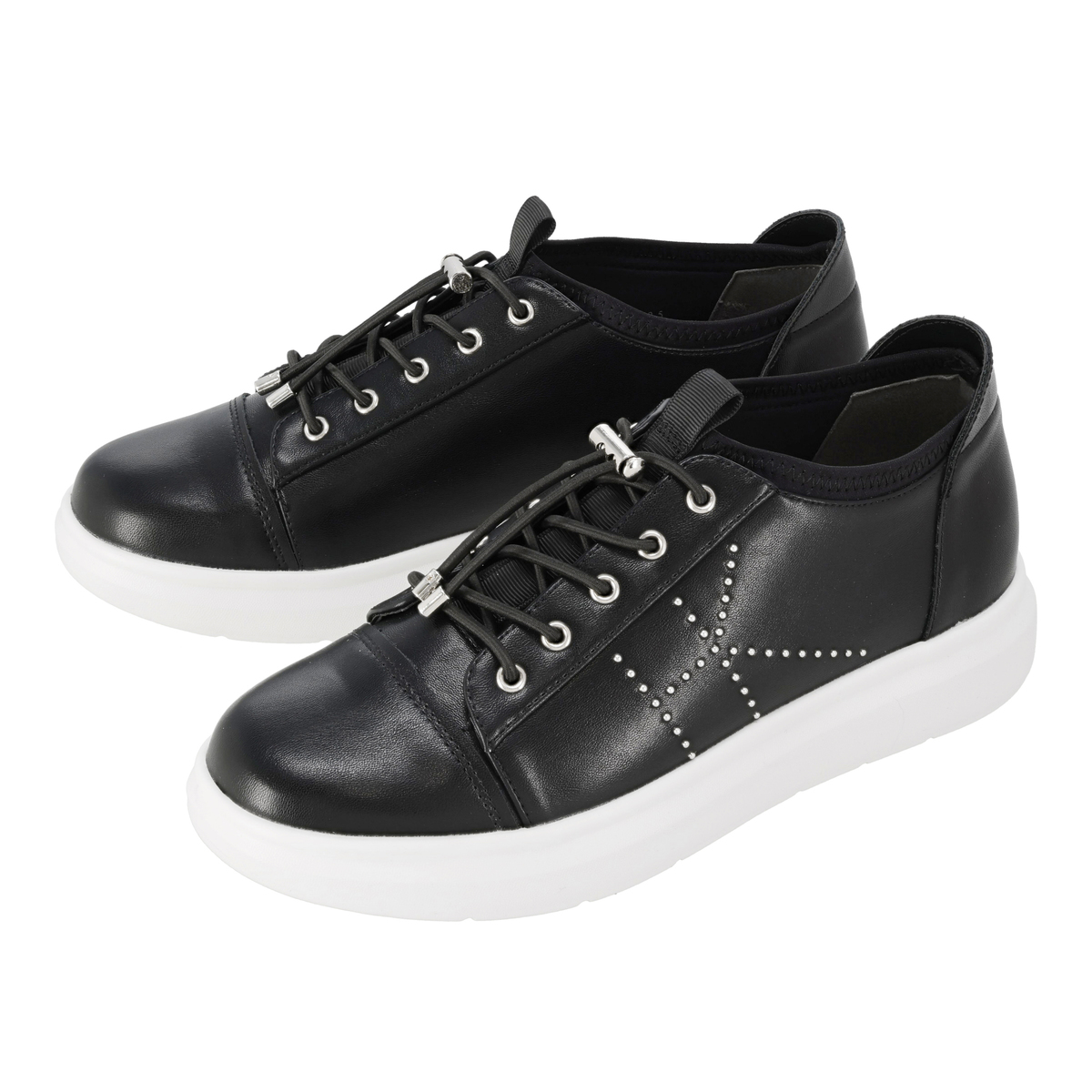 厚底のボリューム感で旬なスタイルを演出するスニーカー。サイドにはスタッズ使いのHKロコマークをあしらい、個性を添えています。片足約220g(23cmでの計測)と軽量設計で、軽快な足運びができます