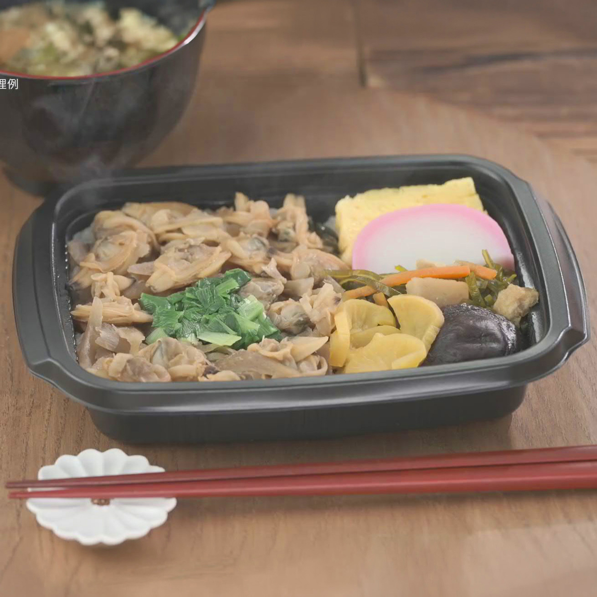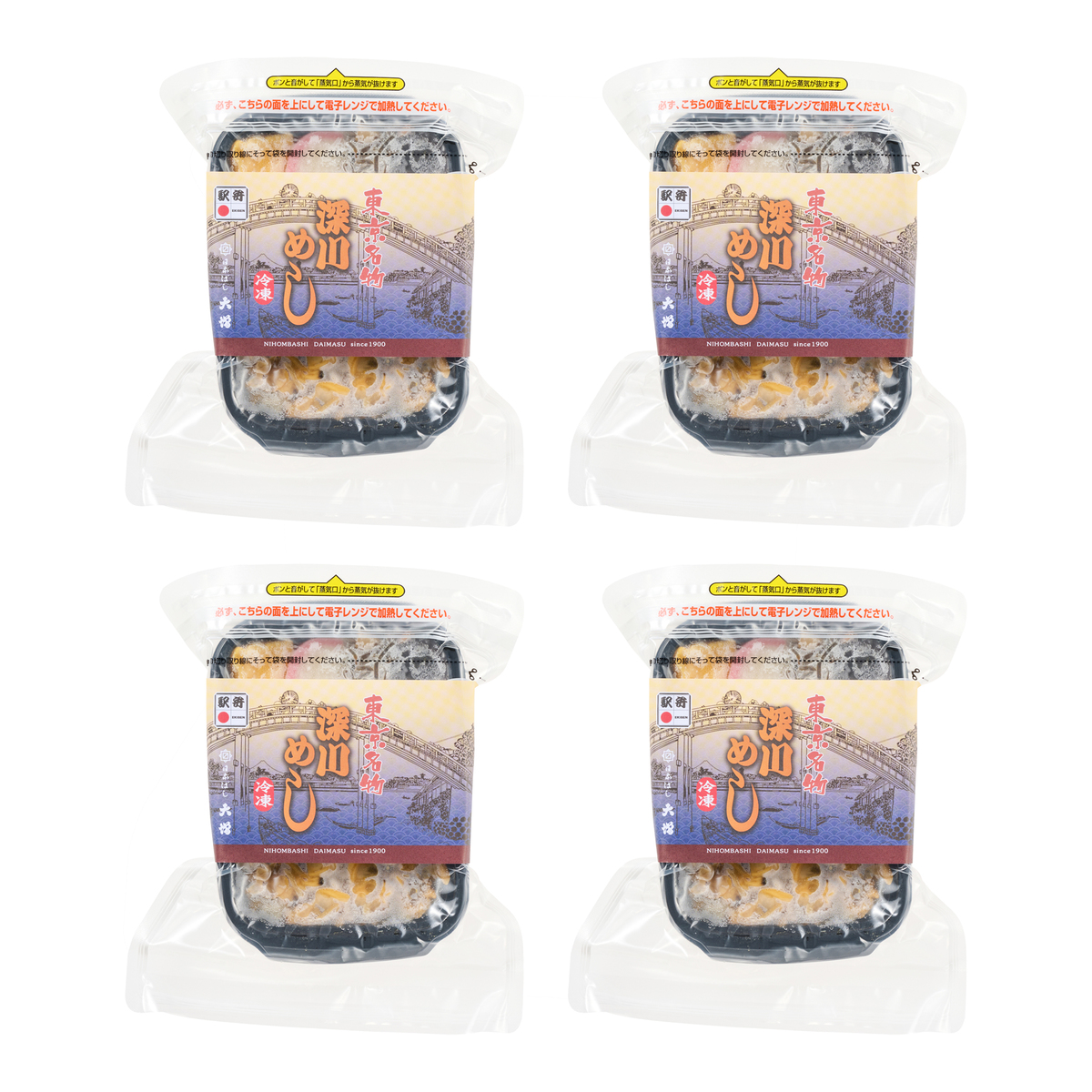 [アレルギー物質特定原材料8品目] 卵、小麦、乳 [内容量] 1人前x4個セット [賞味期限] 出荷時点で賞味期限まで90日以上ある商品をお届けします [保存方法] 開封前:要冷凍(ー18℃以下)で保存してください 開封後:開封後は賞味期限にかかわらずお早めにお召し上がりください [お召し上がり方] <電子レンジ解凍> 掛紙をはずし、開封せず500W 4分または600W 3分20秒加熱してください。加熱後冷たい場合は10秒ずつ追加過熱してください [注意事項] ※ご家庭の冷凍庫は温度変動が大きい為、賞味期限内であってもなるべく早めにお召し上がりください ※アサリなどの二枚貝にはカニが共生しています ※ご家庭の冷凍庫は温度変動が大きい為、賞味期限内であってもなるべく早めにお召し上がりください [原料原産地] 醤油味飯(国産米) [原産国] 日本 [原材料]醤油味飯(国産米)、あさりと生姜の味噌煮、玉子焼、蒲鉾、牛蒡炒り煮、切昆布煮、大根醤油漬、椎茸煮、ねぎ、海苔/加工でん粉、pH調整剤、トレハロース、グリシン、調味料(アミノ酸等)、増粘剤(加工でん粉、キサンタン)、着色料(カラメル、カロチノイド、カルミン酸)、V.B1、酸味料、乳化剤、凝固剤、炭酸Ca、甘味料(ステビア、甘草)、酒精、保存料(ポリリジン)、(一部に小麦・卵・乳成分・ごま・さば・大豆を含む)