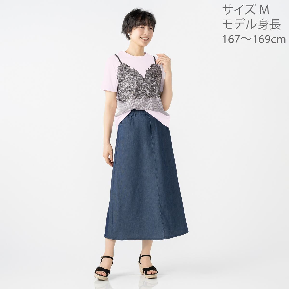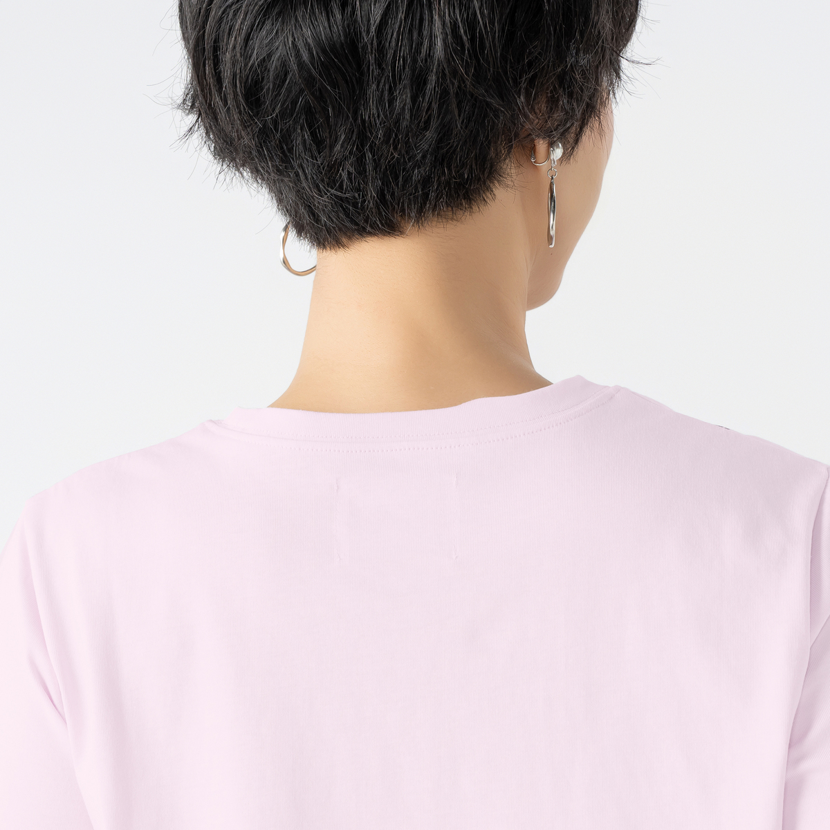 天竺にシルケット加工を施し、キメ細やかな表面感、上品な光沢感と滑らかな肌触りに。バスト周りにはゆとりを持たせた、コンパクトに見せながらほどよいゆとりのあるサイズ感です