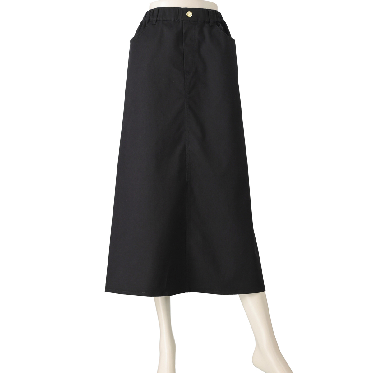 ほどよいゆとりのある腰周りから裾に向かって、広がりすぎない絶妙なAラインシルエット。縦のラインを強調する前中心と後ろ中心の切り替えにダブルステッチを施しています
