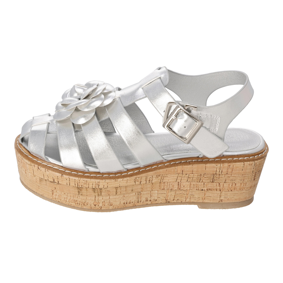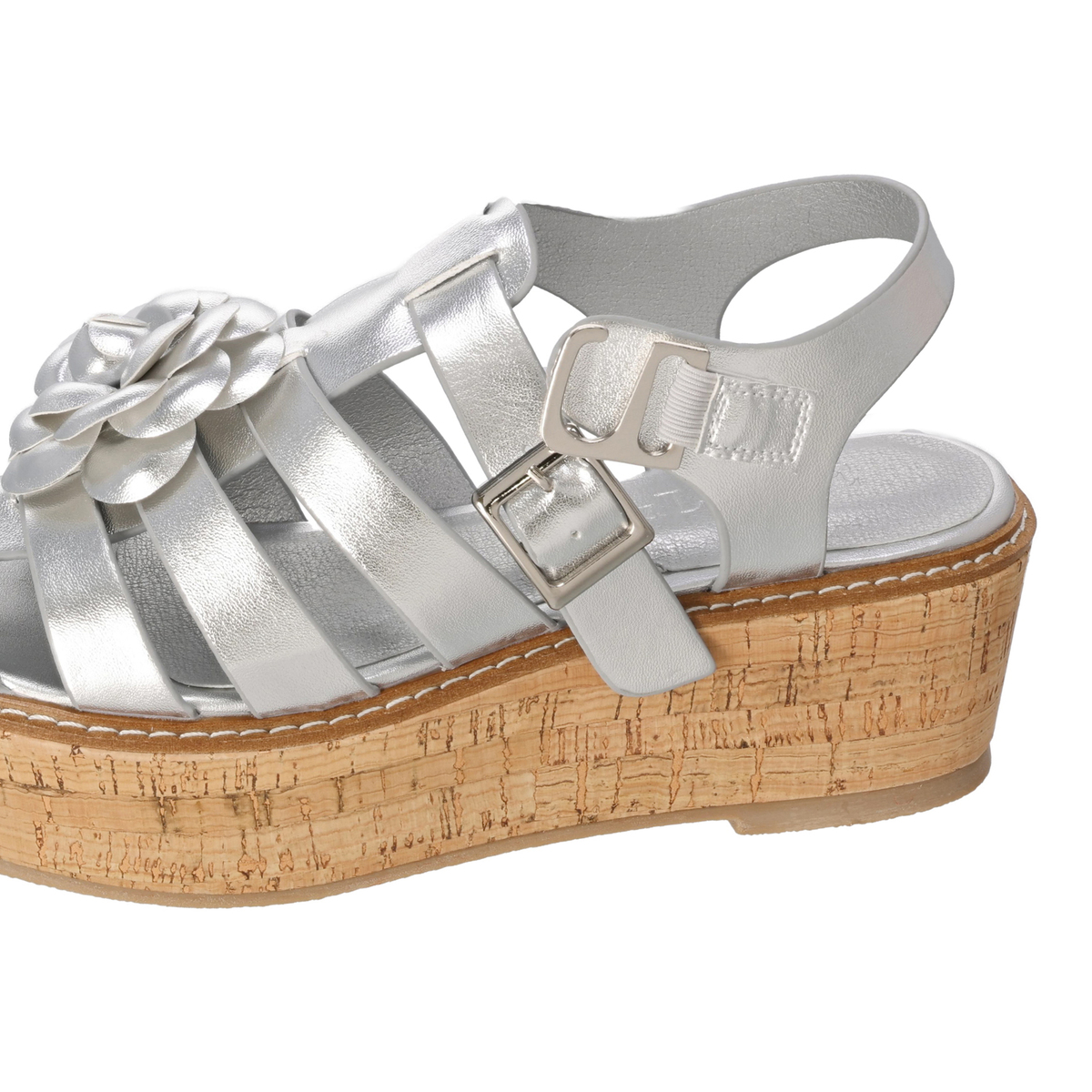 ソールは軽やかなコルク調素材。足裏全体で支える構造で安定感があり、前後の高低差が少ないためヒールが苦手な方にもおすすめです