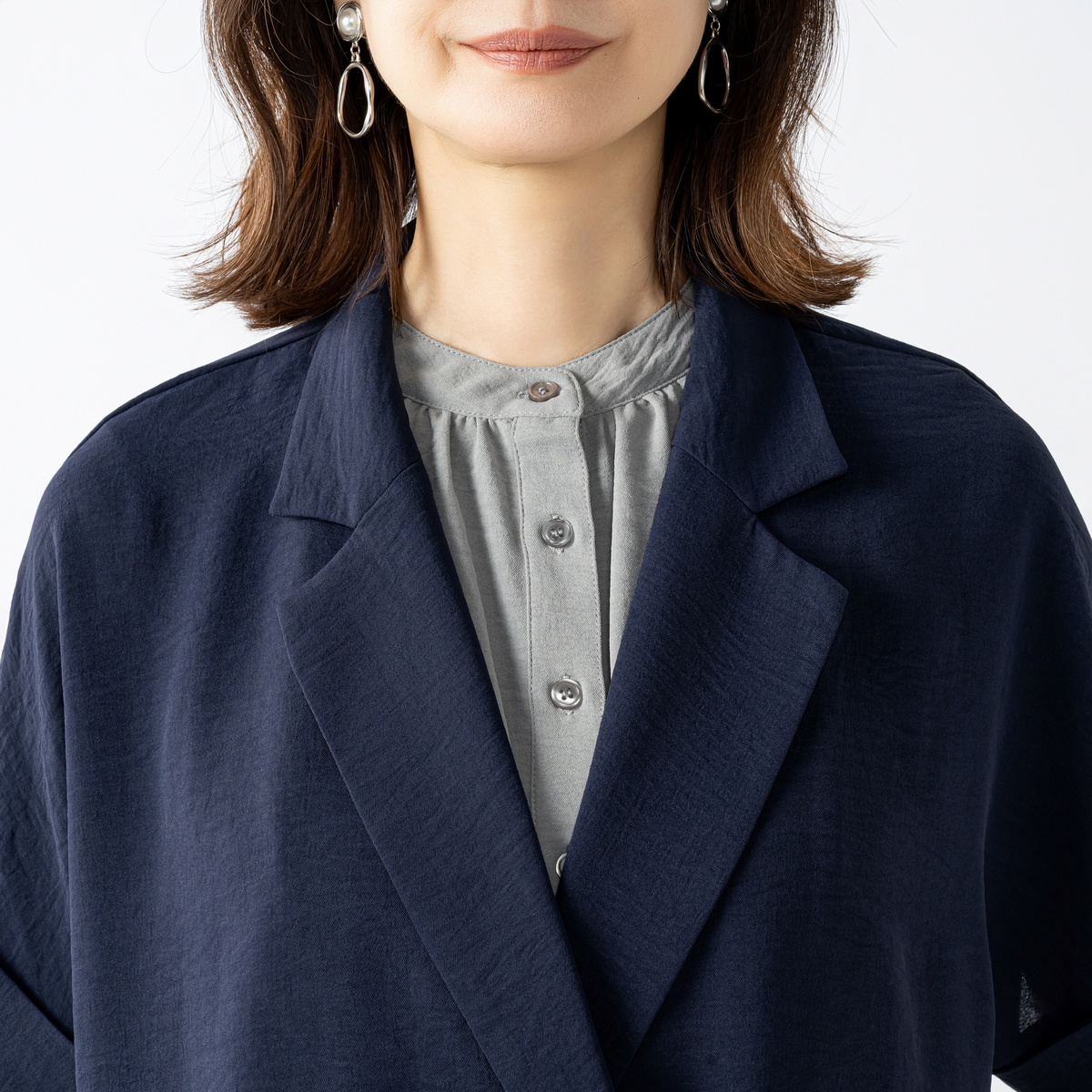 こだわりのパターンできちんと見えし、シャツ感覚で着られるシャツジャケットに。ラグランスリーブや広めの袖幅で動きやすく、肩の重さを感じさせない設計に仕上げました