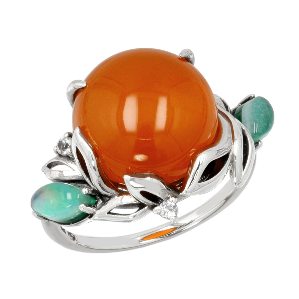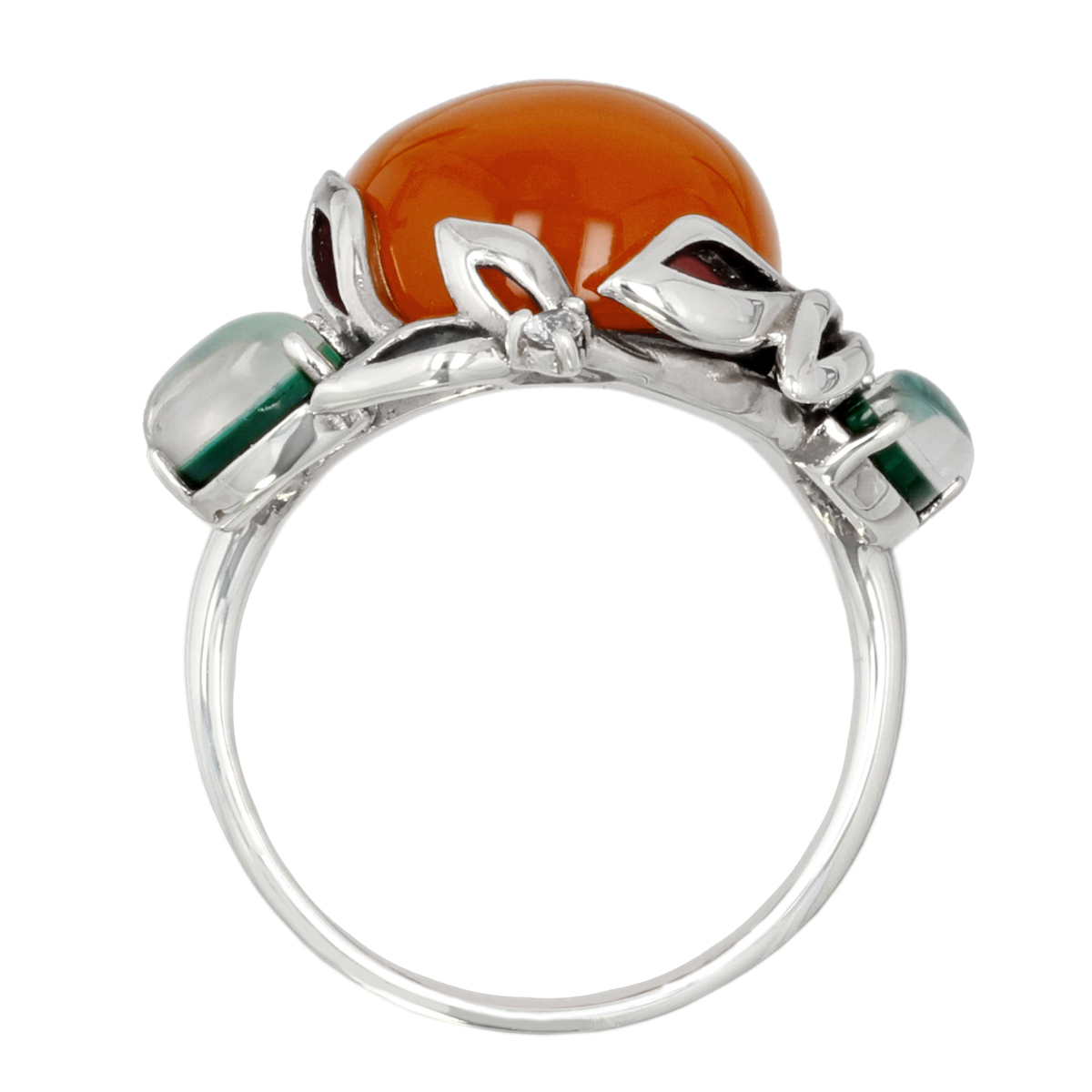 素材: [赤メノウ]ラウンドシェイプ・カボションカット 爪留め/接着 1石 [トリプレット(水晶/マラカイト/白蝶貝)(模造)]マーキスシェイプ・カボションカット 爪留め/接着 2石 [ホワイトトパーズ]ラウンドカット 爪留め/接着 2石 最大幅(約) 15.0mm 最小幅(約) 1.0mm 総重量(約) 4.0g [地金] シルバー925 [仕上げ] アンティーク仕上げ ■素材の大きさ・形・色合い、製品のサイズは1点1点多少異なります ■専用ケース付 【タイ製】