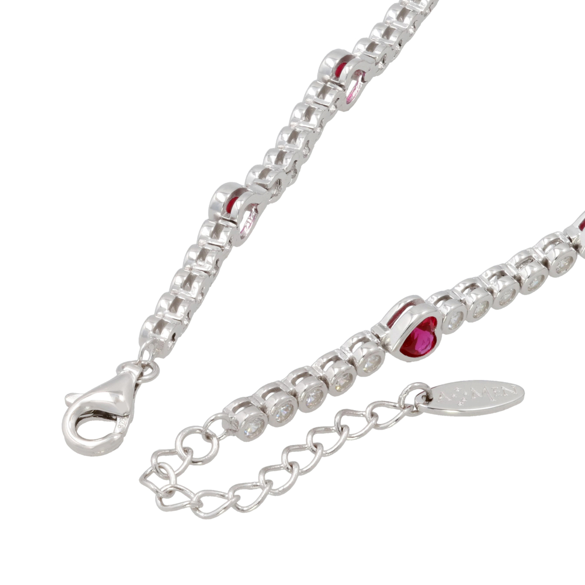 素材: [キュービックジルコニア] ハートシェイプ・ラウンドシェイプ ベゼルセッティング 総重量(約) 5.7g 長さ(約) クリア/ブルー:17.0〜19.5cm レッド:17.5〜20.5cm 幅(約) 大:5.0mm 小:3.0mm 留具の形状 ロブスター アジャスターの有無 有 チャームの有無 無 [地金] シルバー925 [メッキ] ロジウムメッキ ■素材の大きさ・形・色合い、製品のサイズは1点1点多少異なります 【中国製】