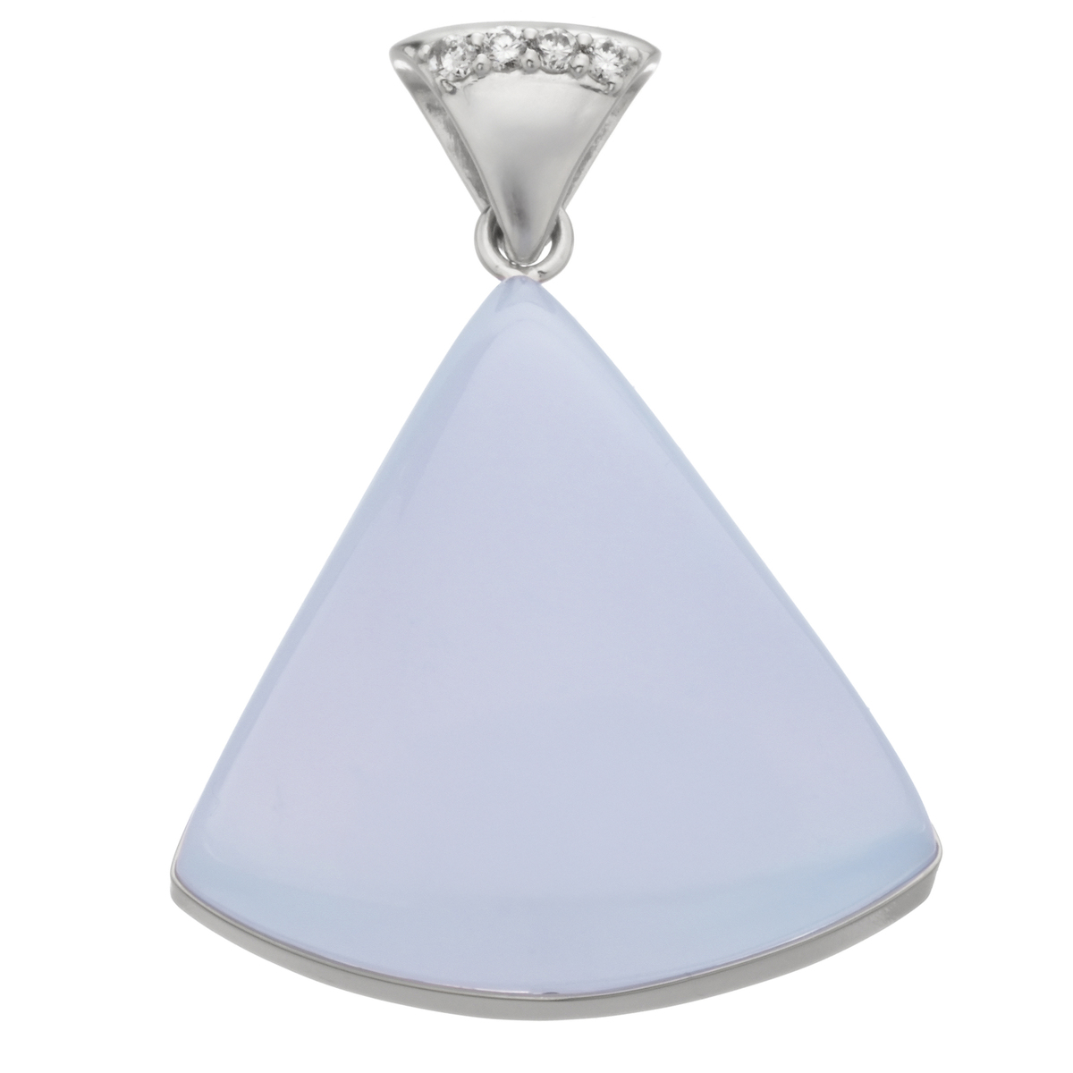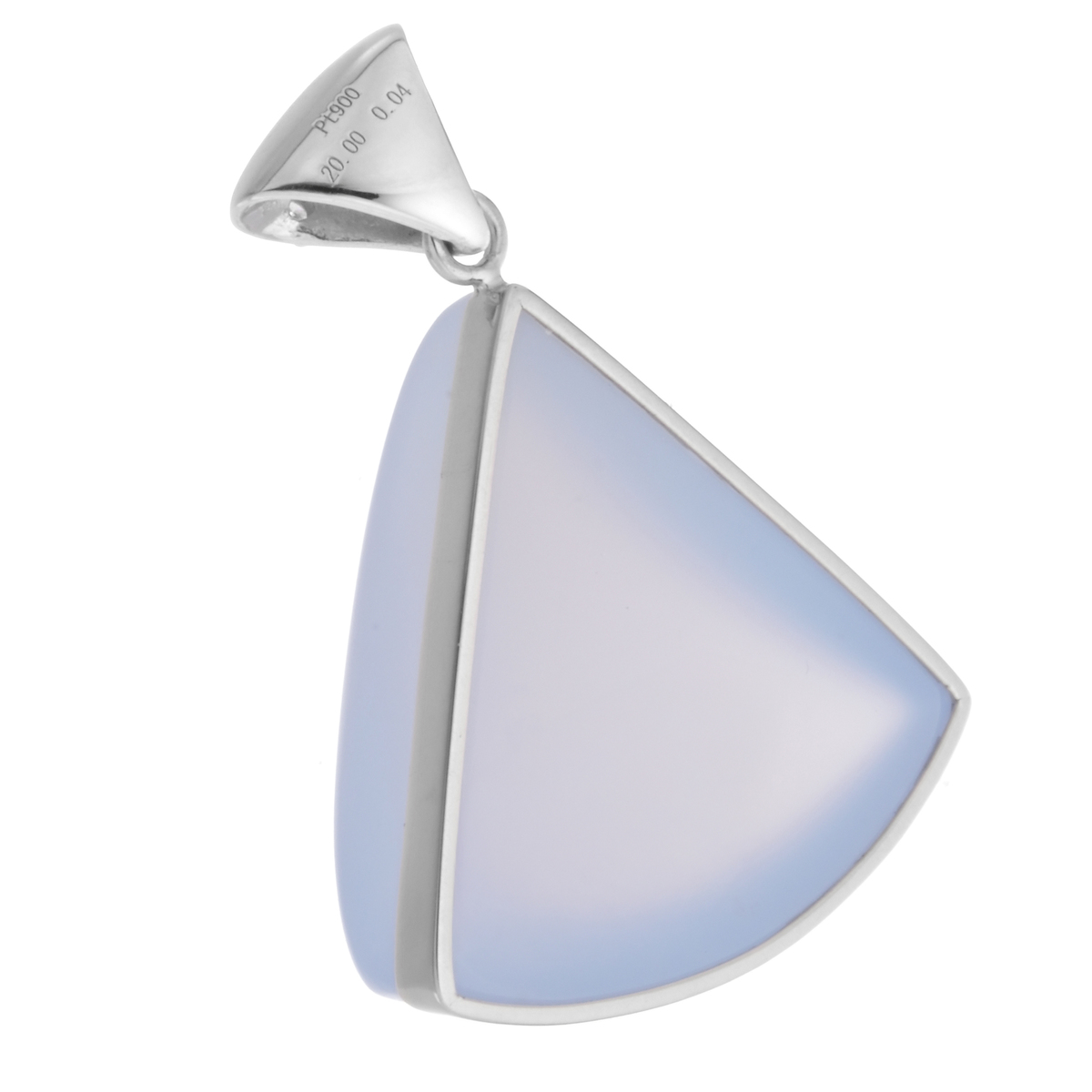 着色していない天然のブルーカルセドニーを使用。優しいとろみのある藤色掛かったブルーの色合いが優しく上品に胸元を飾ります