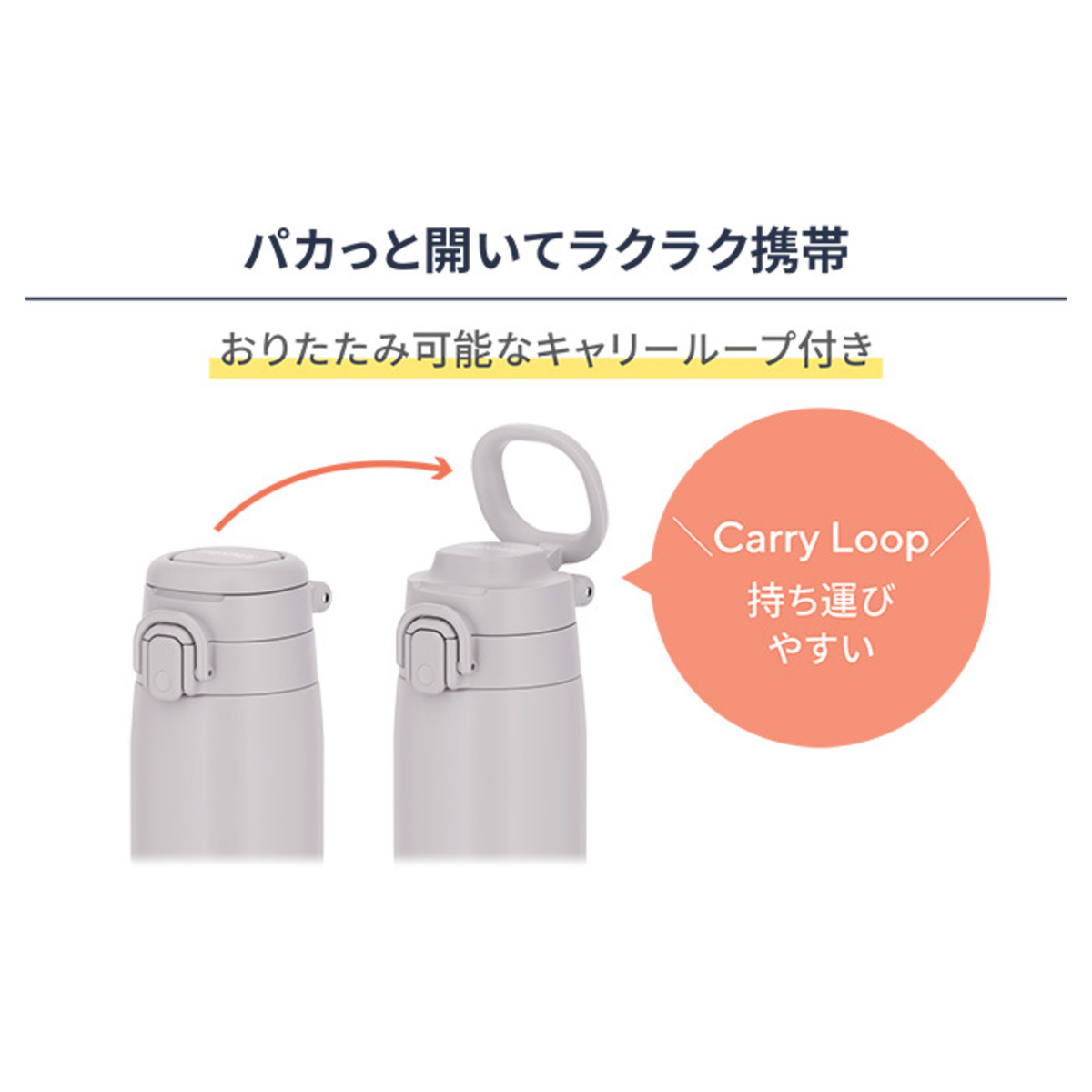 持ち運びやすいキャリーループを備えた、使い勝手のよいマグ。真空断熱構造で、様々なシーンでさっと持ち運べる手軽さが魅力。デイリーにもお出かけにも活躍します。全パーツ食洗機対応です