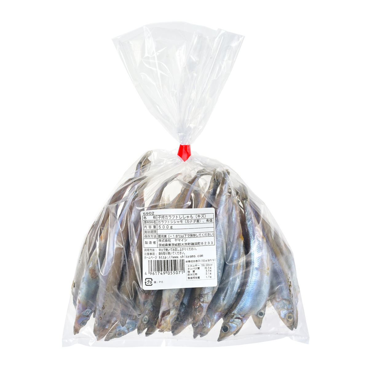 [アレルギー物質特定原材料8品目] なし [内容量] 500g×2袋 [賞味期限] 出荷時点で賞味期限まで120日以上ある商品をお届けします [保存方法] 開封前:冷凍(‐18℃以下)で保存してください 開封後:開封後はお早めにお召し上がりください [お召し上がり方] 中火で焼いてお召し上がりください [原料原産地] カラフトシシャモ(カナダ産) [原産国] 日本 [原材料]カラフトシシャモ(カナダ産)、食塩