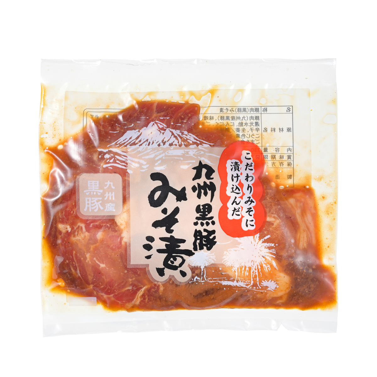 九州産の黒豚を使用したみそ漬です。黒豚はほのかな甘みと弾力性があり、歯切れの良い肉質が特長。赤身と脂身のバランスのよい部位を使用しています