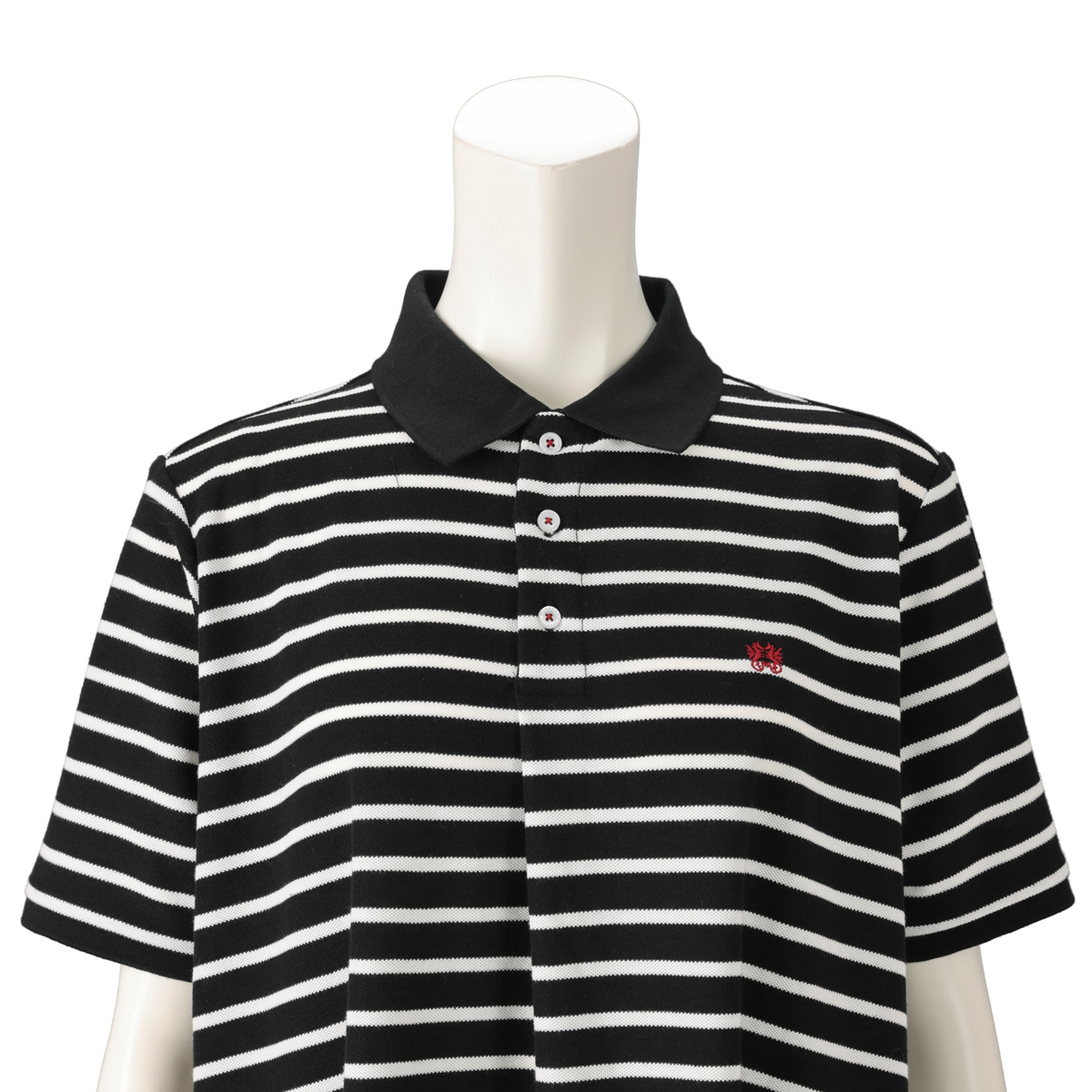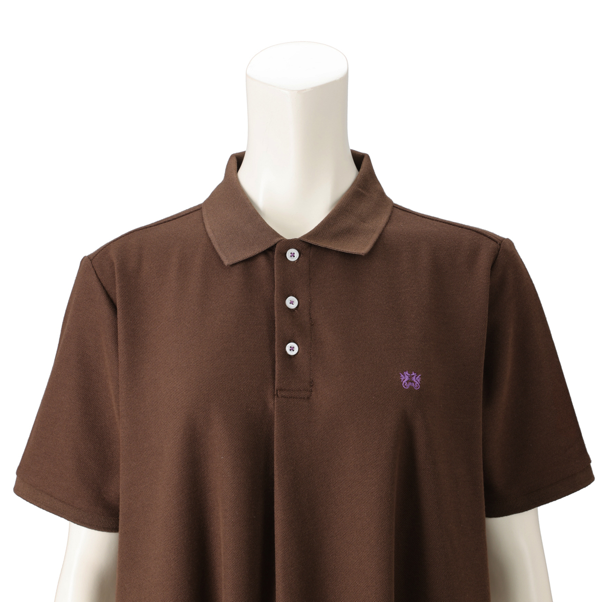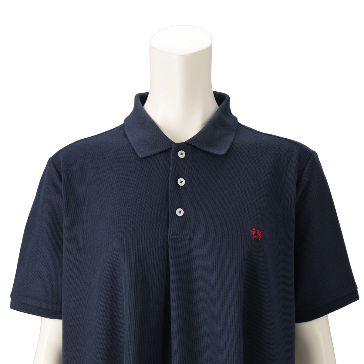 カノコ特有の凹凸感で、きちんと感のあるポロワンピース。前立て裏や襟付け部分には同色のヘリンボーンテープを施し、トラッドなディテールにこだわりました。左胸のドラゴン刺繍や、貝調の刻印入りボタンがアクセントになっています