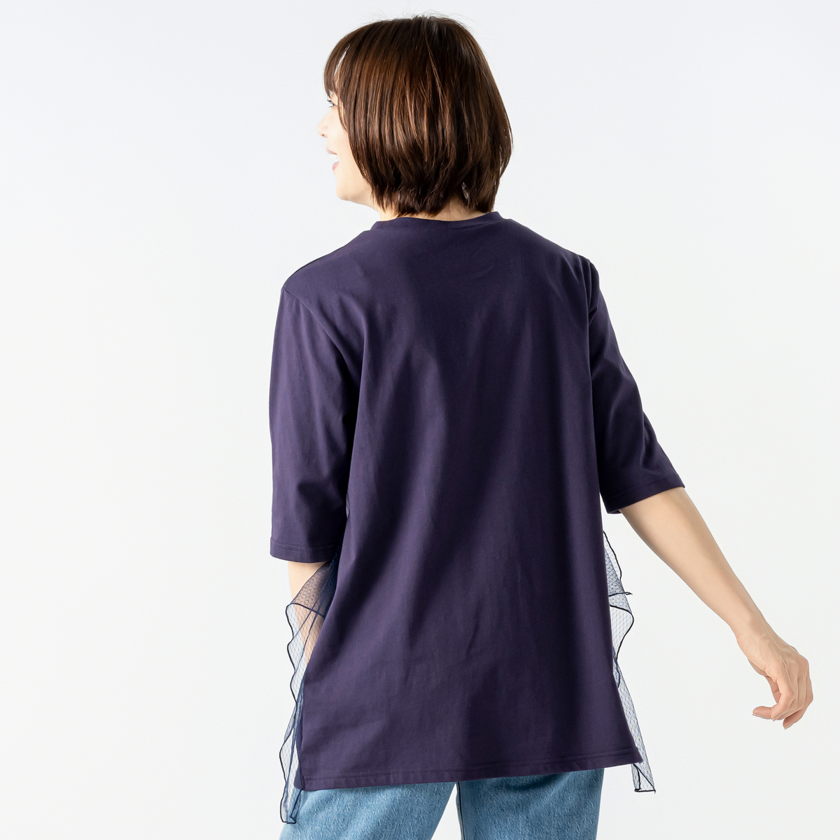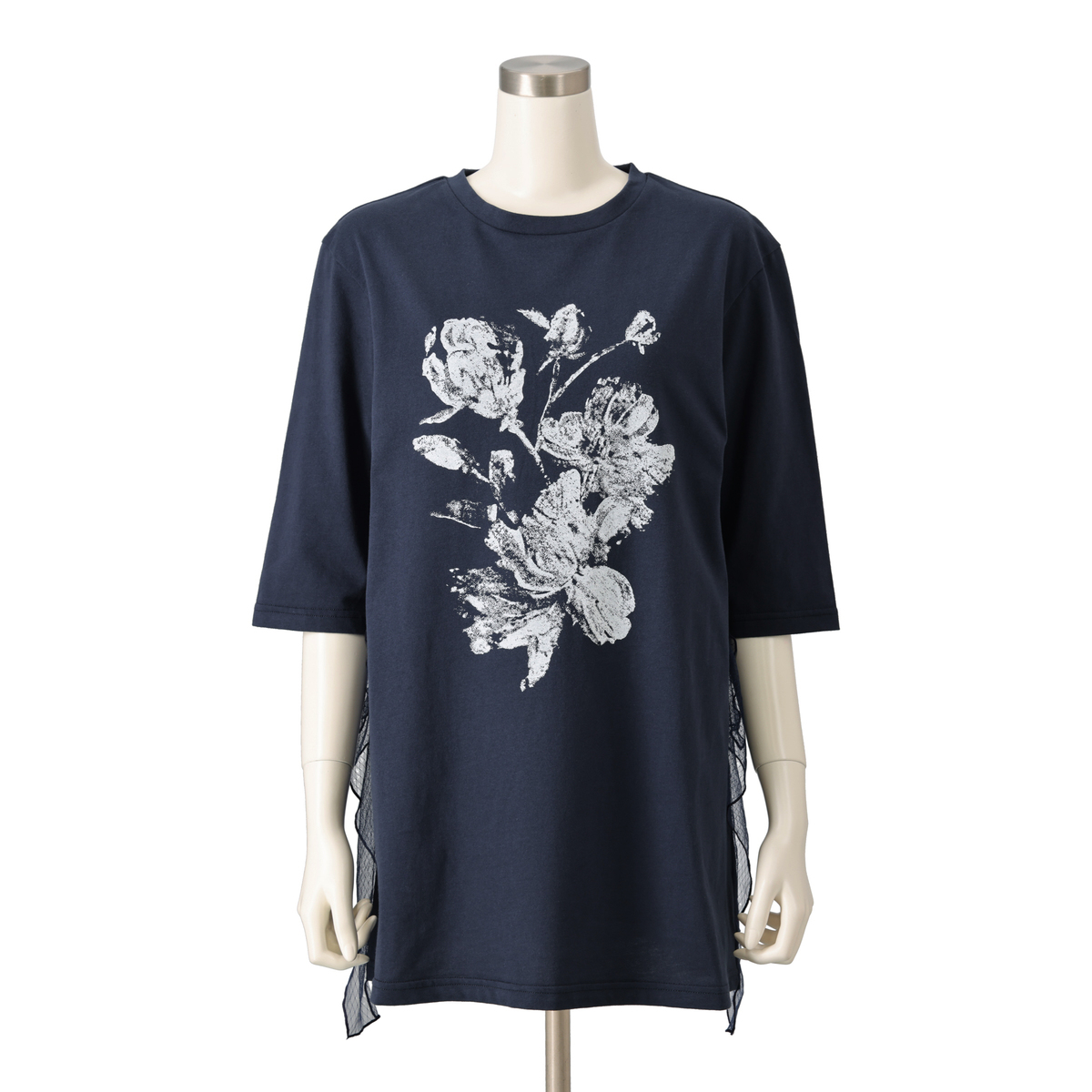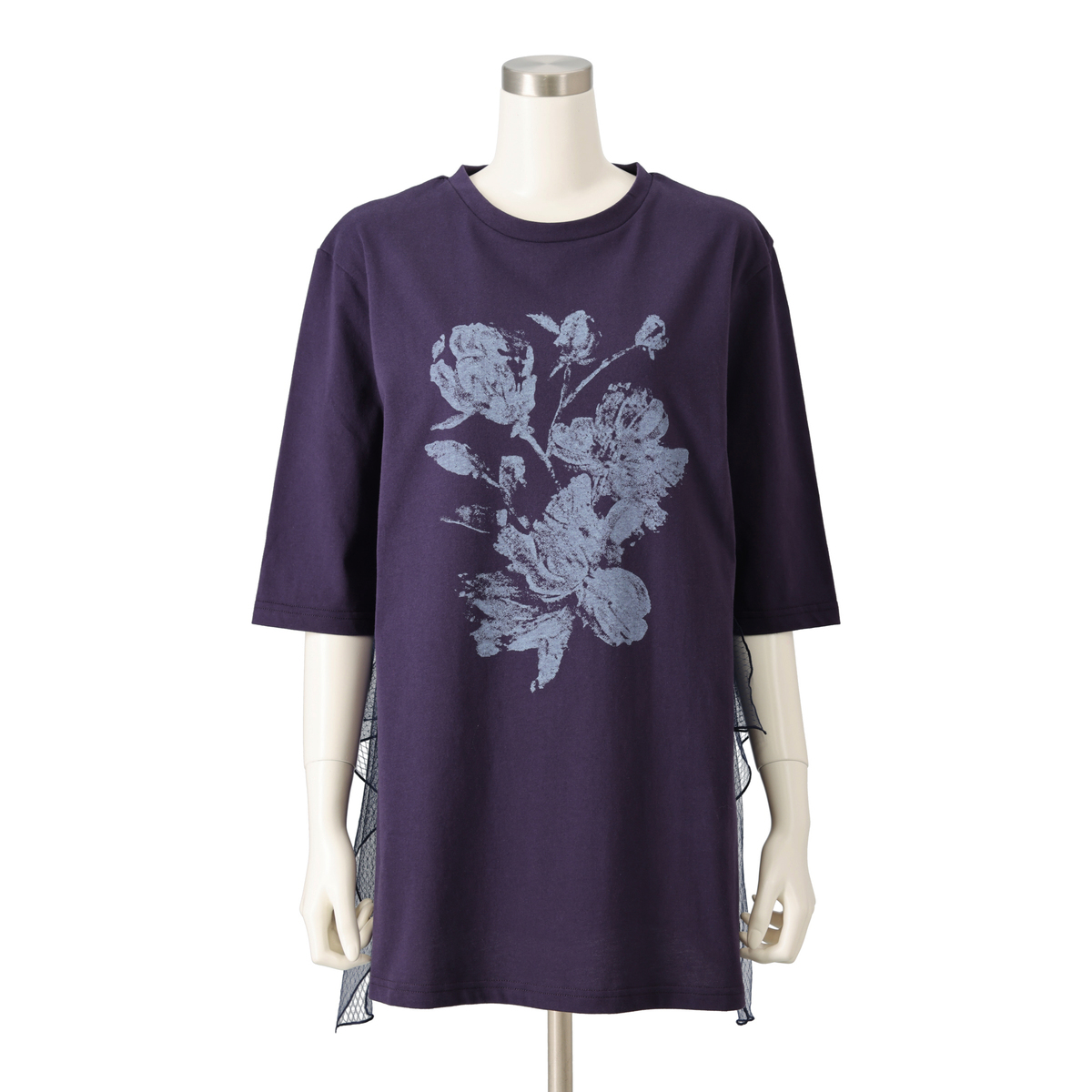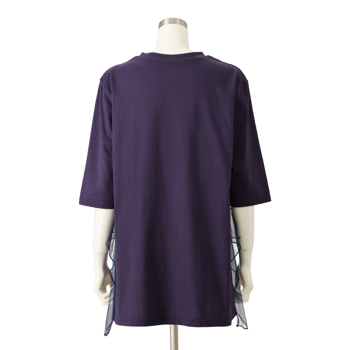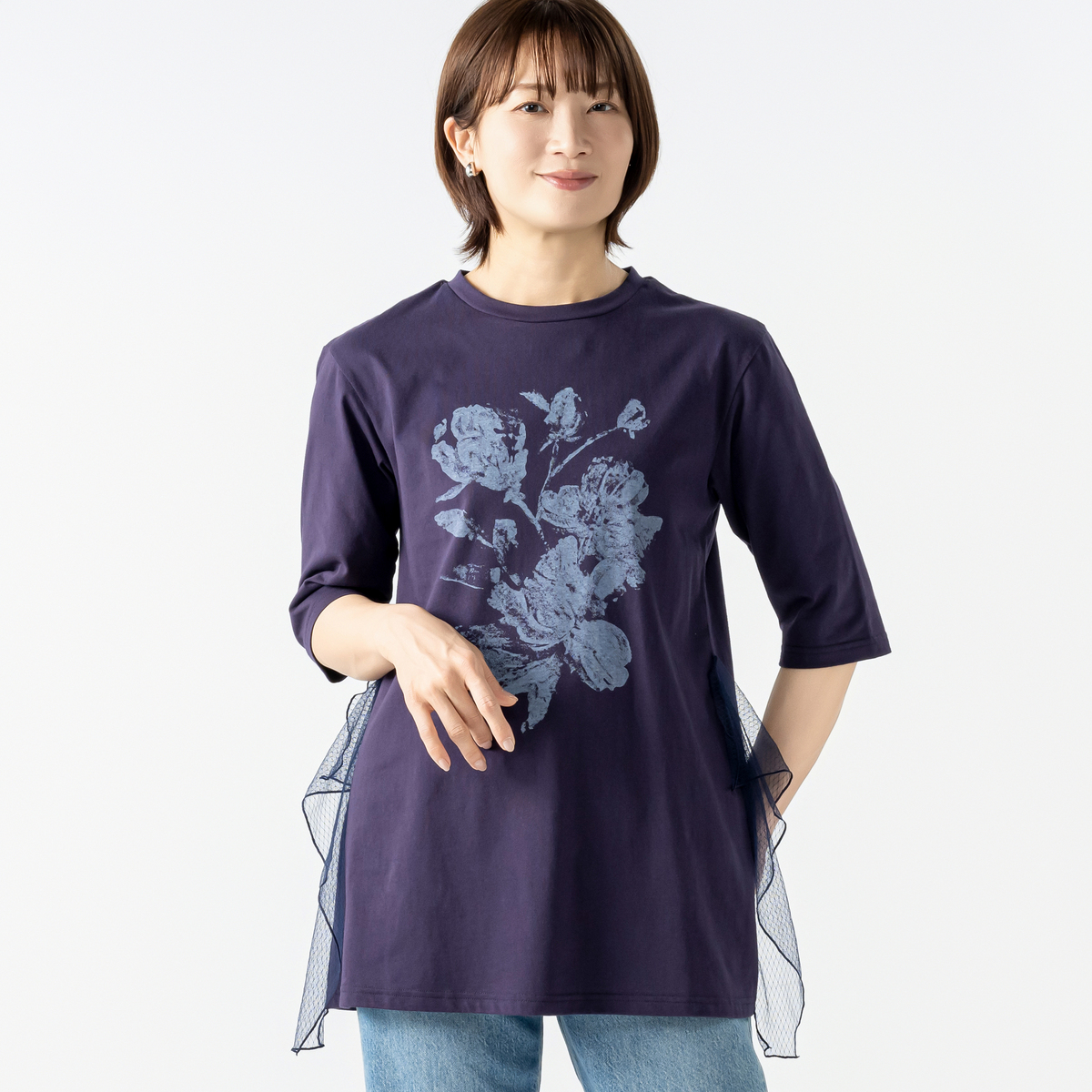 程よいAラインシルエットですっきり見せるチュニックです。サイドのラッフルチュールが揺れ、シンプルなデザインに上品な華やかさをプラス。柔らかなカットソー素材が肌に心地よく、長時間の着用でも快適です