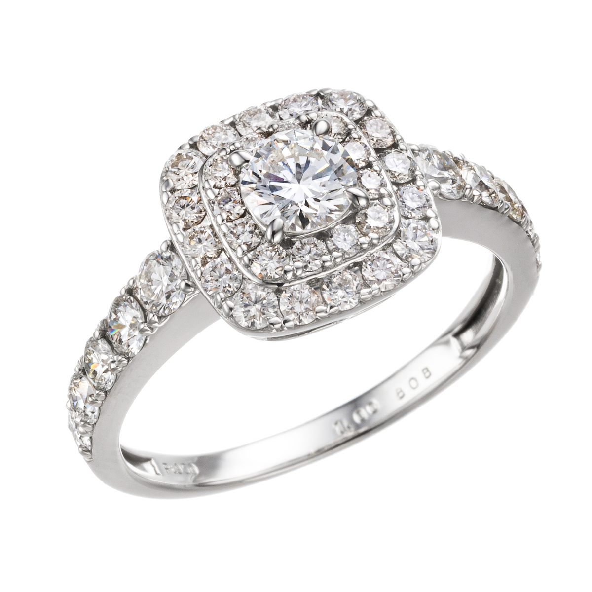 美しいダイヤモンドを贅沢に使用したリングです。取り巻きの角度や起伏にこだわり、四角い輪郭でも丸みを持たせることで、お手元に優しい印象を与えます