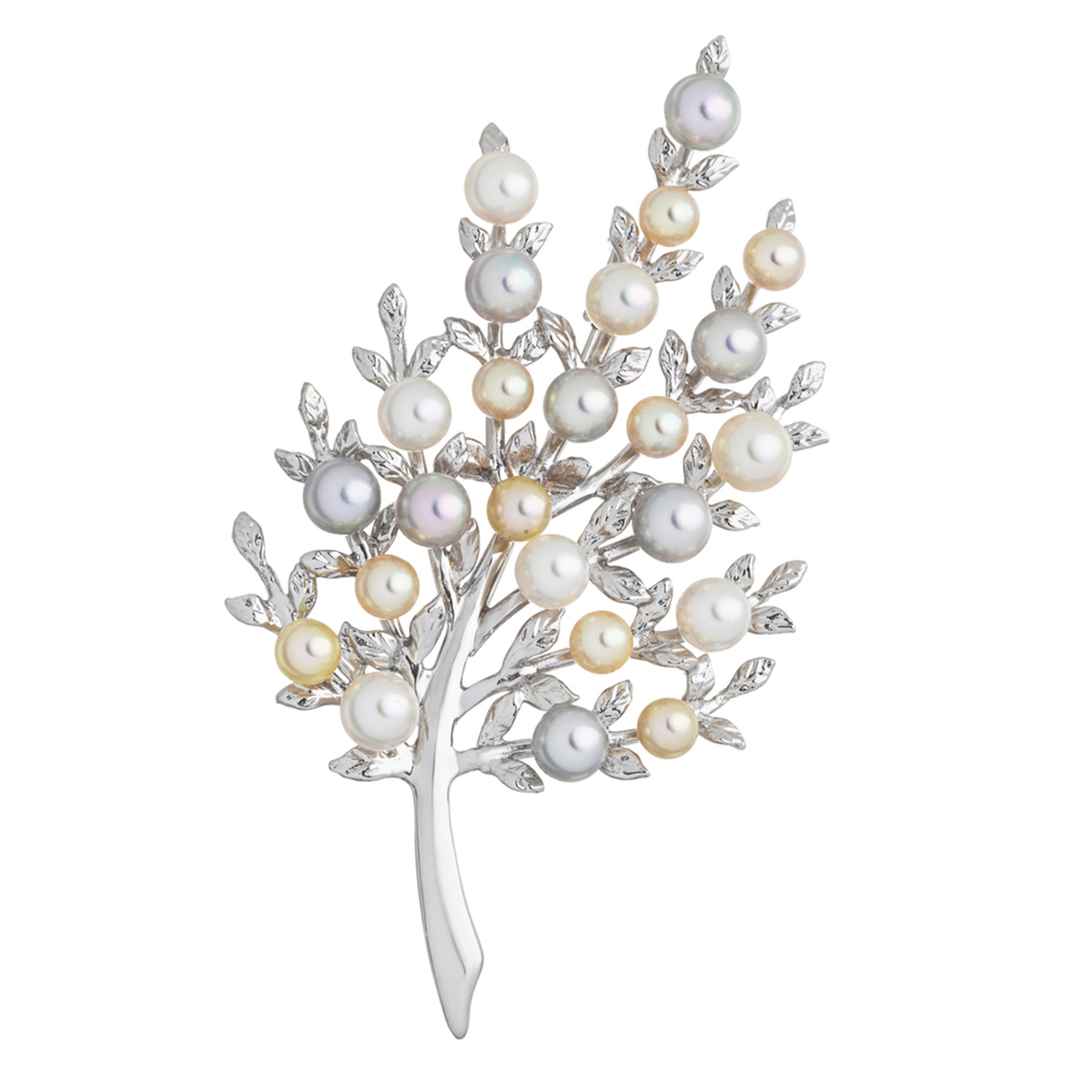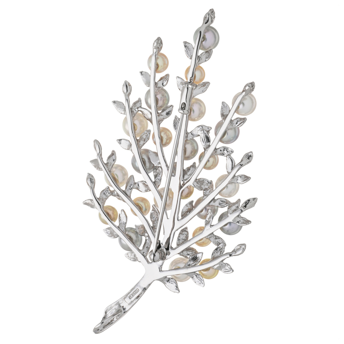 ナチュラルカラーのアコヤ真珠をあしらった、ツリーモチーフのブローチ/ペンダントヘッド。贅沢に4.0〜5.0mmUPのアコヤ真珠を24珠も使用し、華やかなデザインに仕立てました