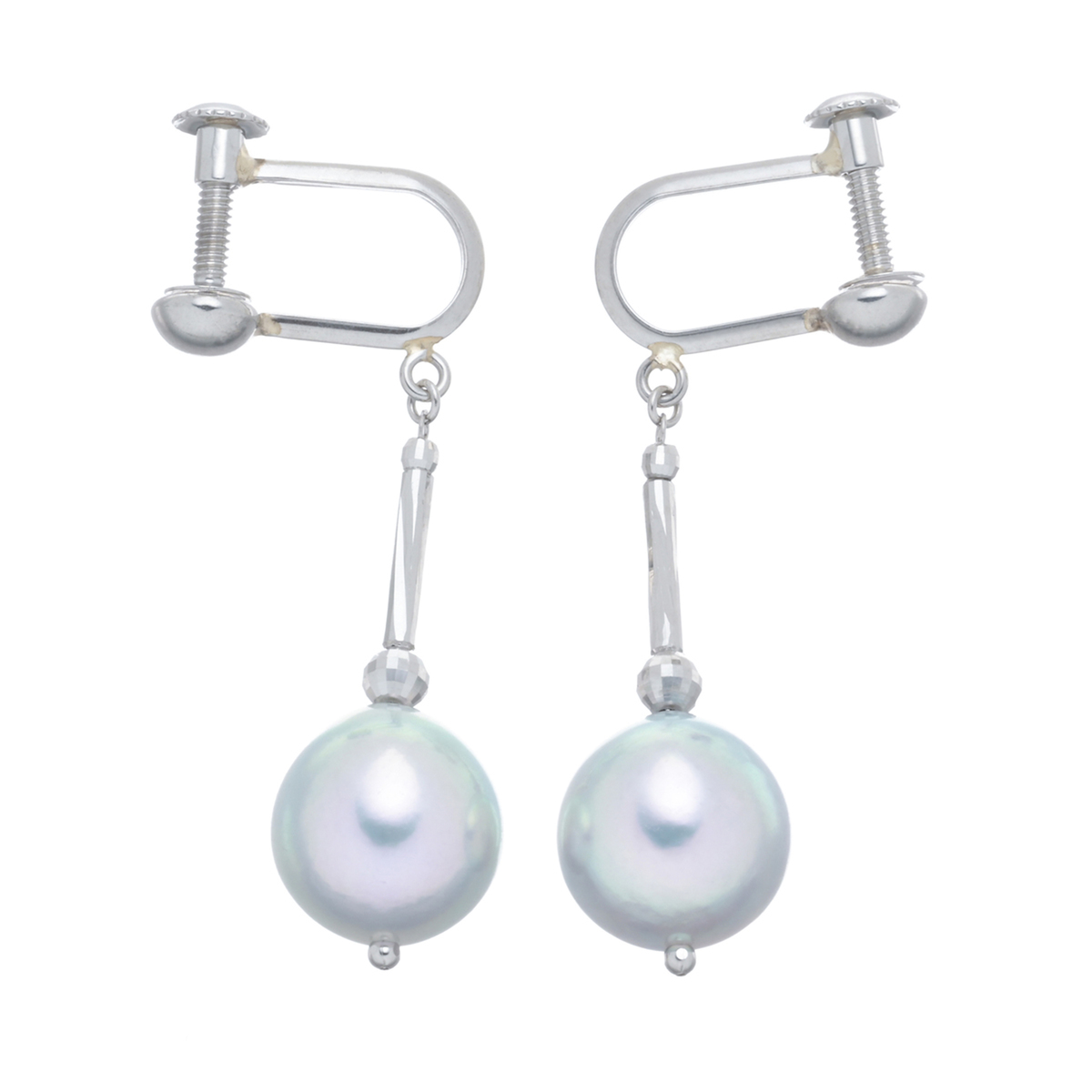 ナチュラルグレーカラーのアコヤ真珠をあしらったイヤリングです。落ち着いた品の良いカラーの8.0mmUP珠を使用しました
