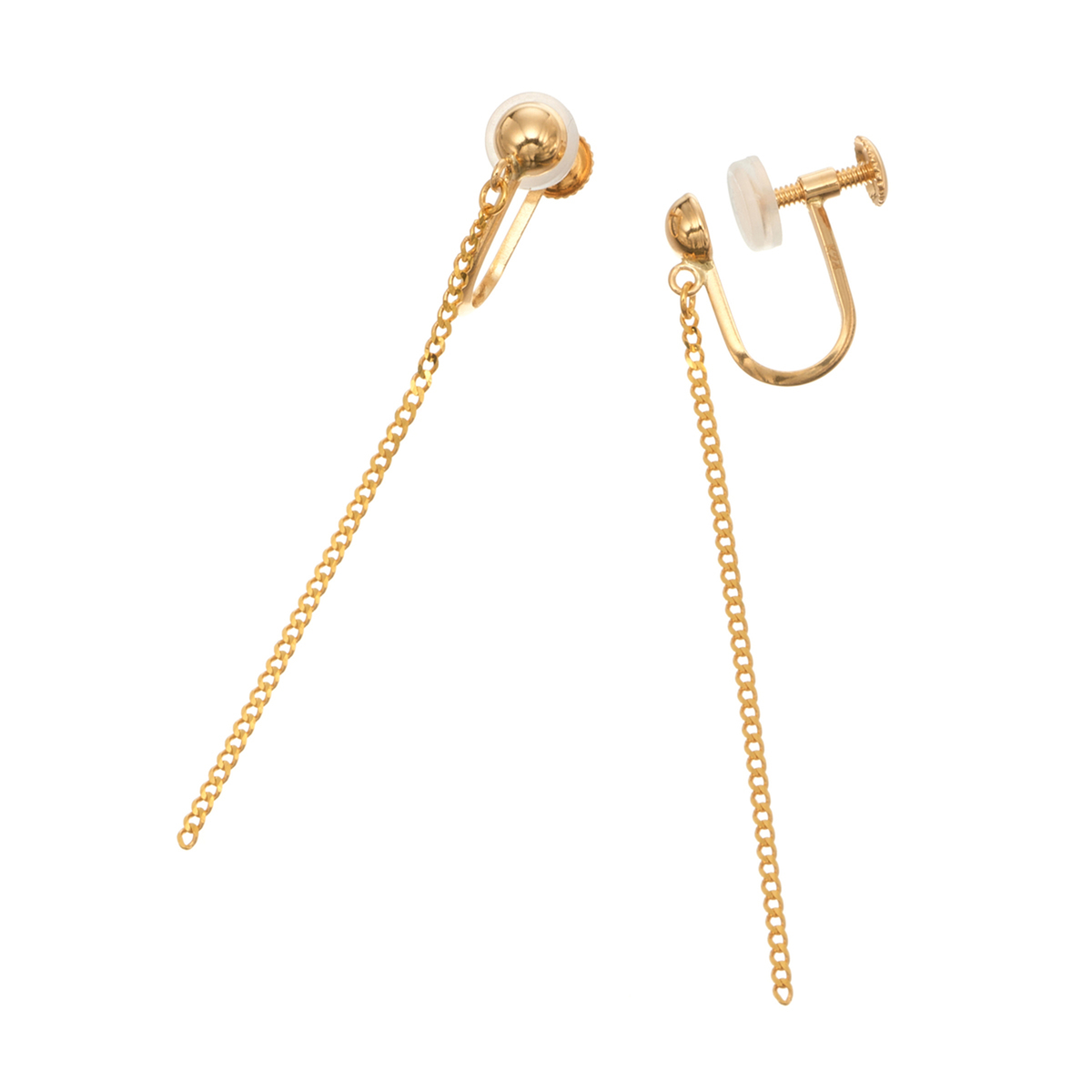 中心にVカット、両サイドを斜めにカットを施したチェーンのイヤリングまたはピアス。ベーシックなシングルキヘイチェーンに8面カットを施し、強い煌めきを楽しめるチェーンに仕上げました。本体に純金を使用した華やかなチェーンが揺らめき、シンプルながらも印象的に顔まわりを彩ります