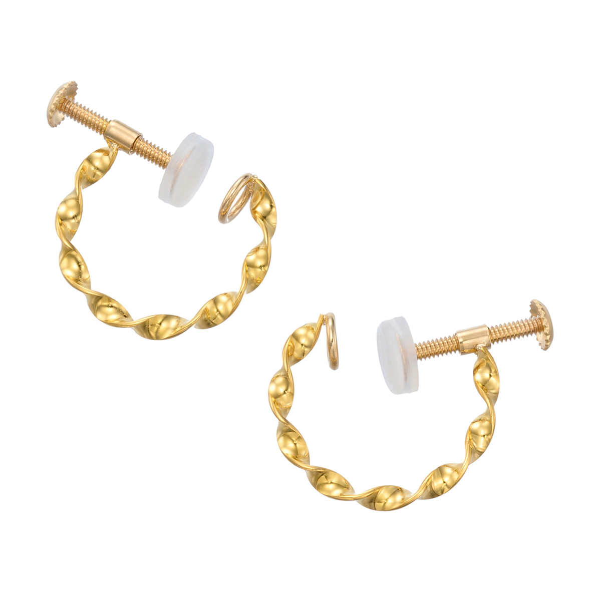 本体に純金を使用した、フープタイプのイヤリングまたはピアス。フープのカーブと相まって光の強弱がひねりによって生み出されます