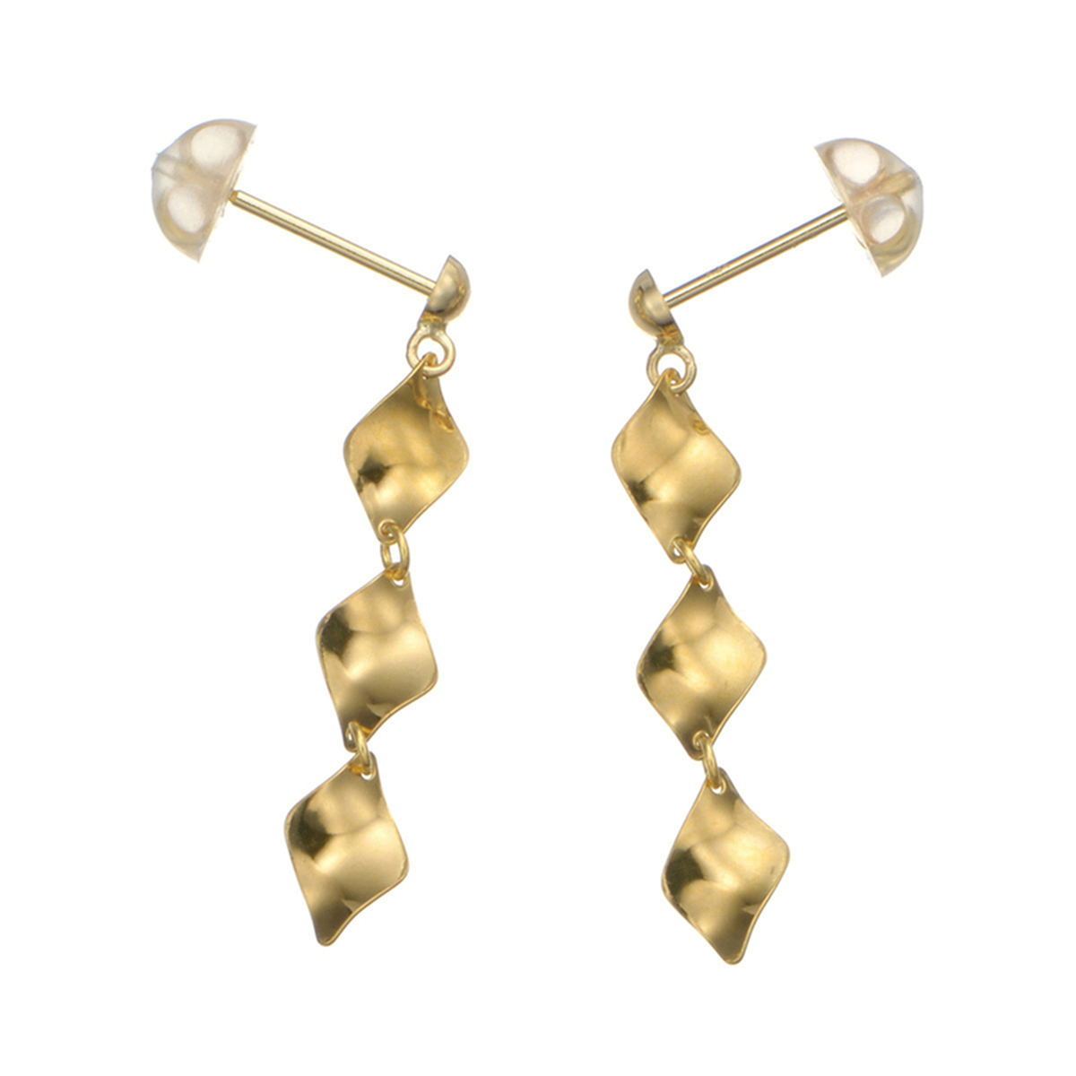 木の葉がひらひらと舞うような揺れ感と煌きが魅力的なイヤリングまたはピアスです。本体には純金を使用。華やかな輝きが、お顔まわりを明るくみせてくれます