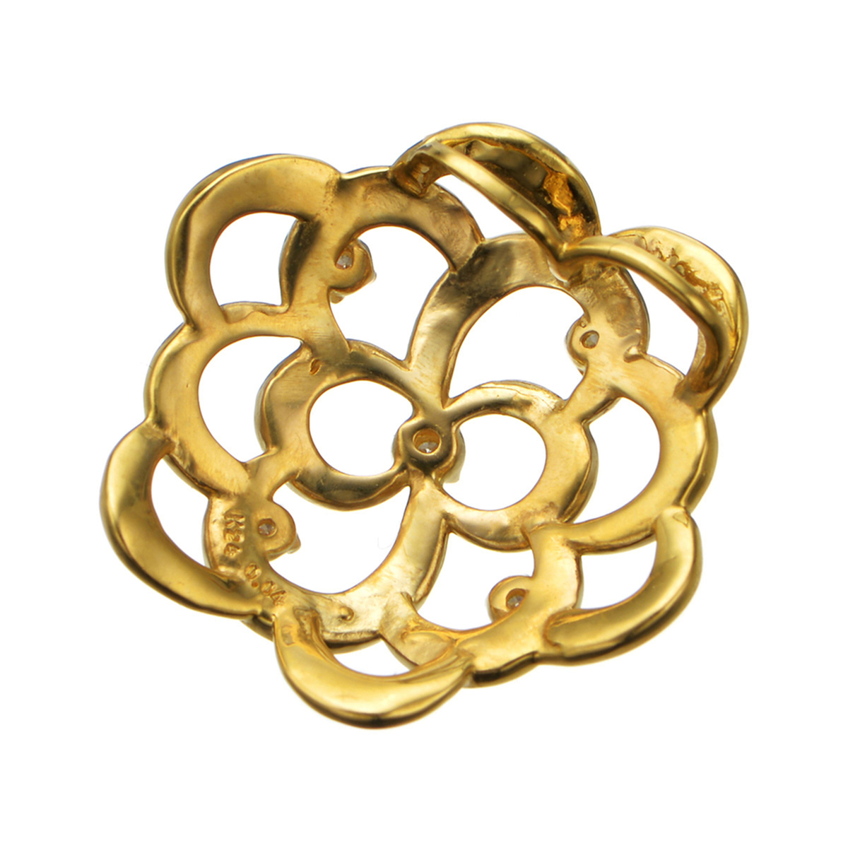 鏡面の曲線で美しい花をイメージしたペンダントヘッド。立体感のあるフォルムが胸元を上品に演出します。純金の煌めきにダイヤモンドの輝きを添えたデザインです