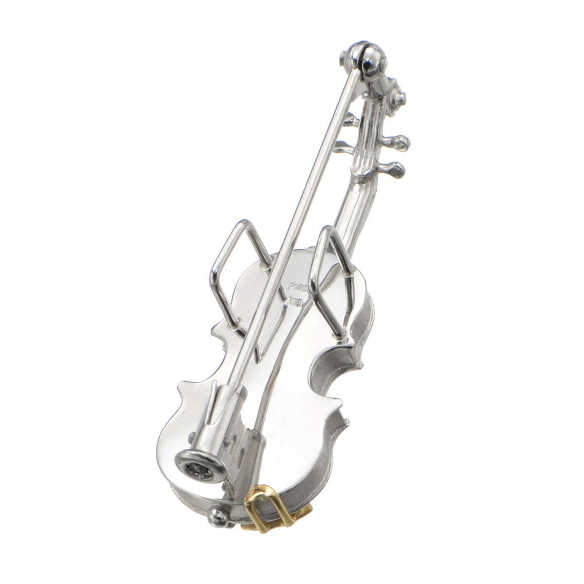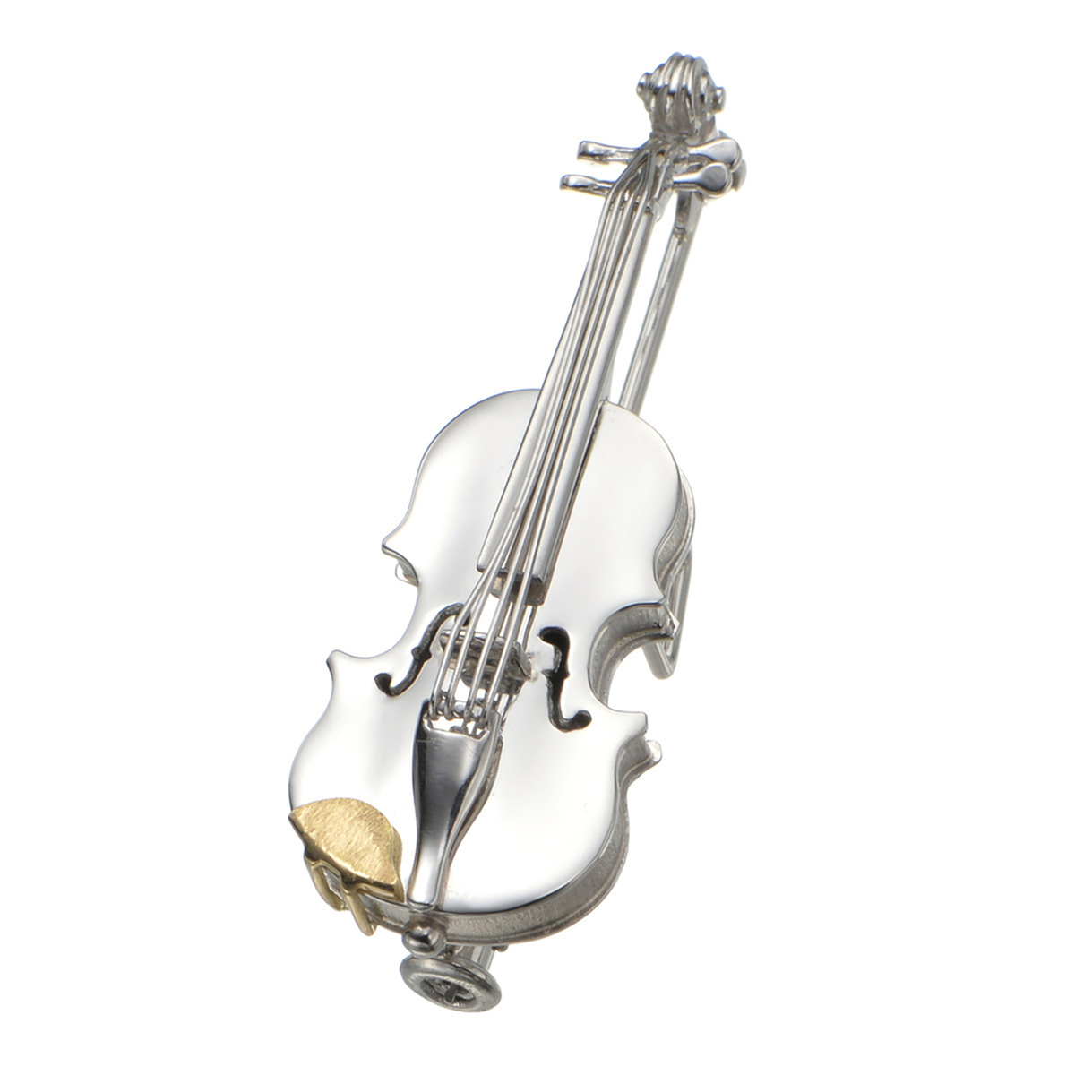 バイオリンモチーフのブローチです。バイオリン特有の柔らかな曲線と艶やかな煌めきを細部まで忠実に描いた精密なデザインです