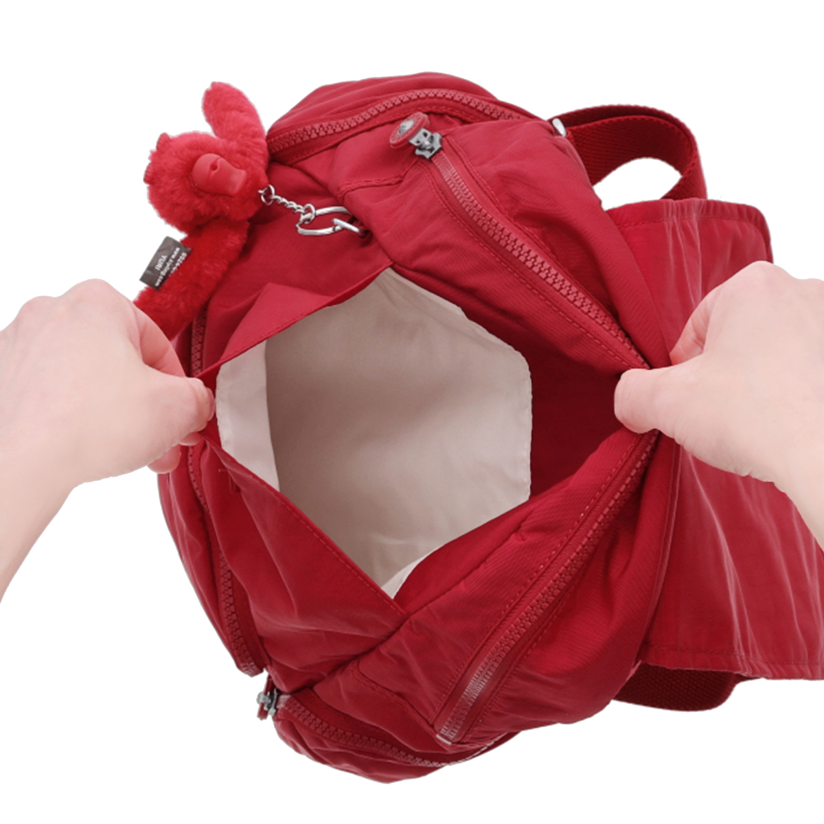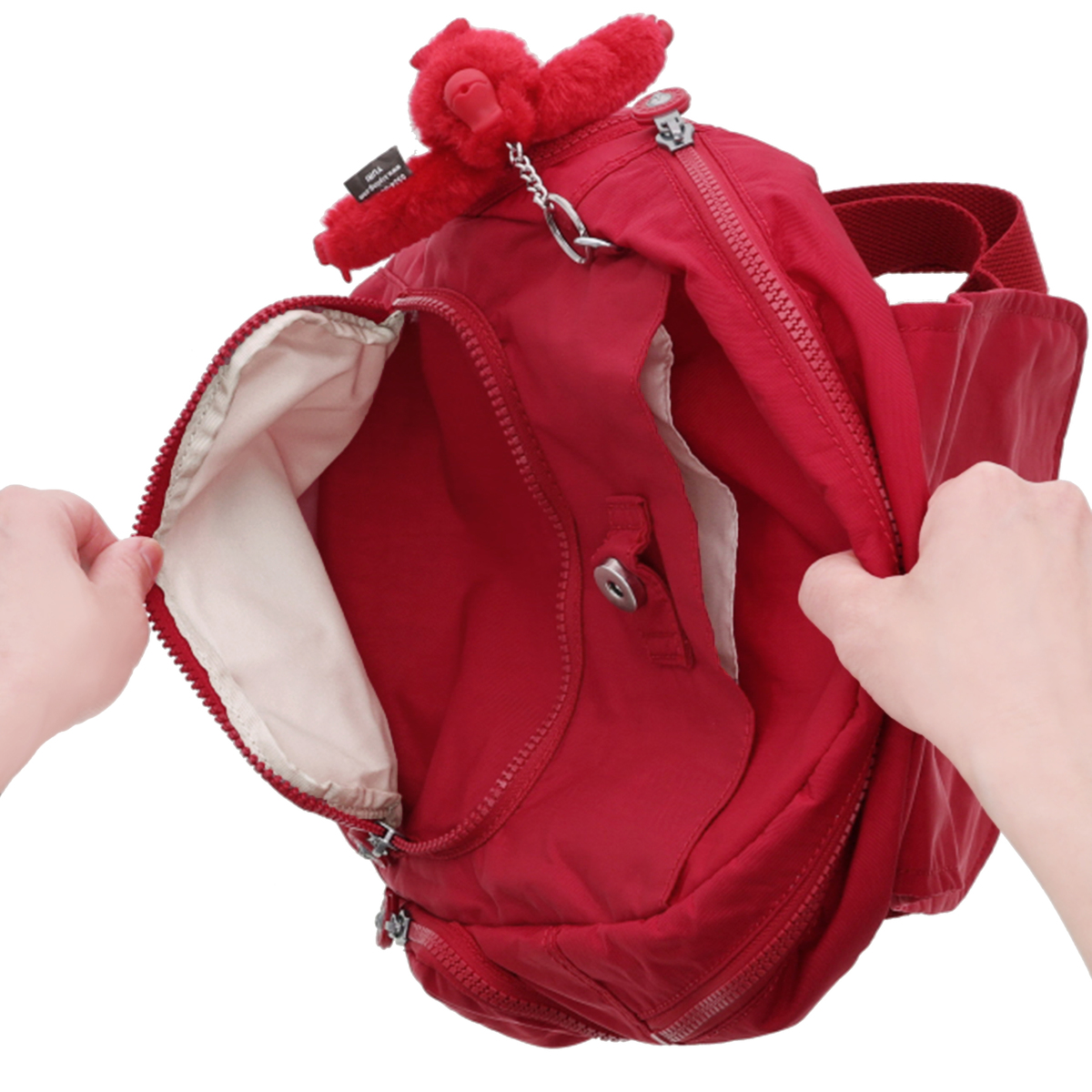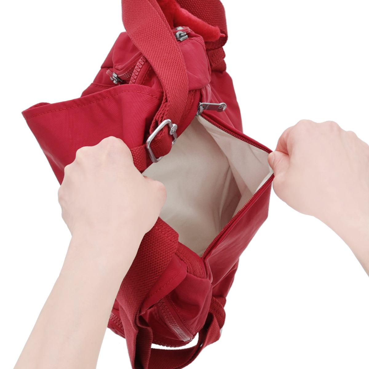 [サイズ(約)] 縦34×横35(最大)×マチ17.5cm ショルダーベルト長さ:45〜83cm ハンドル立ち上がり:8cm [重量(約)]※付属品含む 480g [素材] <表地> ルビーレッド:ナイロン カクテルカーキ:ポリエステル ※裏地有 [仕様] 付属(取り外し可):チャーム 開閉:かぶせ蓋マグネット式+ファスナー式 底ビョウ:無 [ポケット] <内側> ファスナーポケット×1 オープンポケット×1 ペン挿し×2 キーフック×1(メイン収納内) <外側> 前面:ファスナーポケット×1 オープンポケット×1 サイド:ファスナーポケット×2 後面:ファスナーポケット×1 [注意事項] ※直射日光や蛍光灯の影響で変色することがありますのでご了承ください 【インドネシア製】