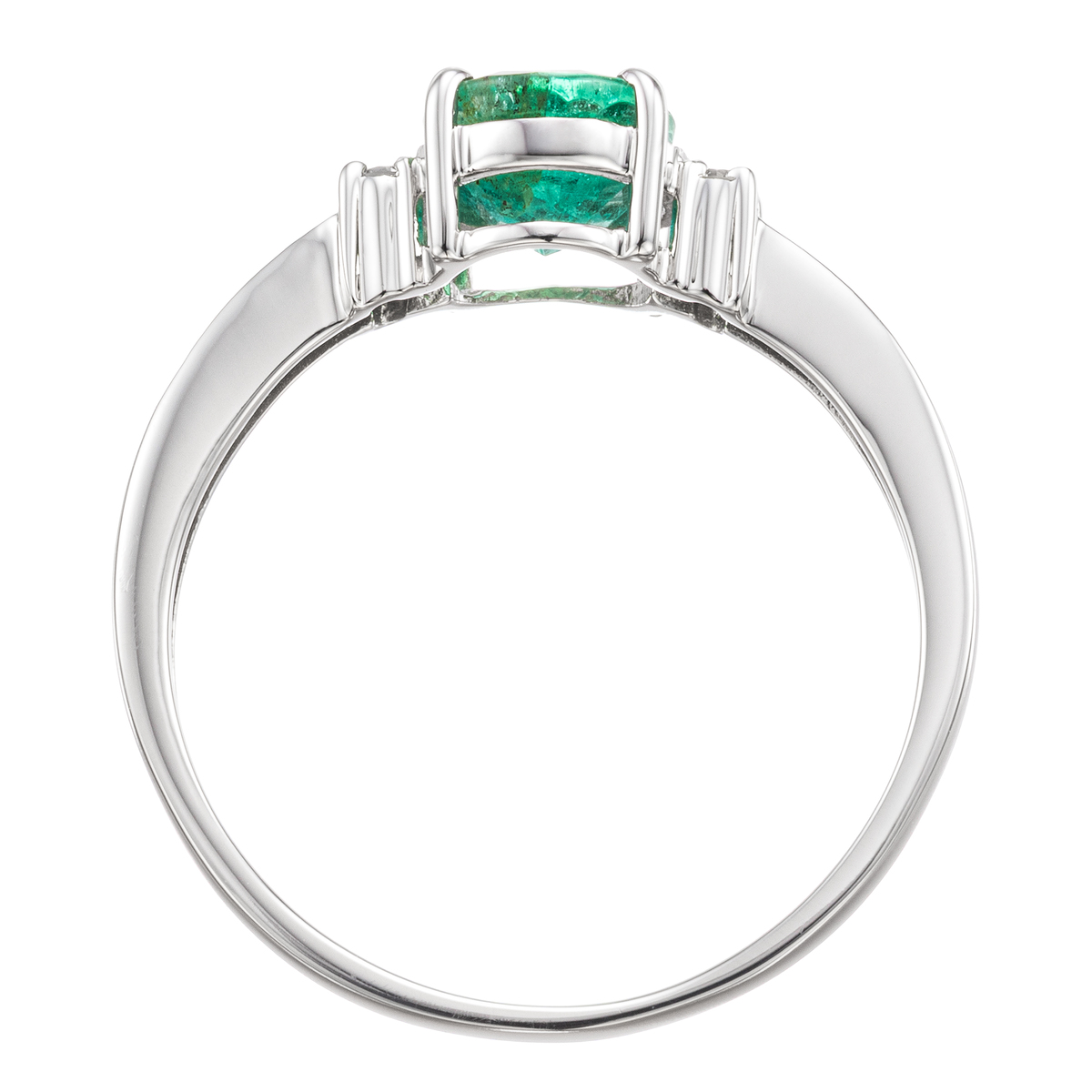 素材:[エメラルド] オーバルシェイプ 爪留め 1石 1.00ctUP [ダイヤモンド] ラウンドシェイプ 爪留め 12石 合計0.11ctUP 最大幅(約) 7.5mm 最小幅(約) 1.5mm 総重量(約) 2.3g [地金]プラチナ950 [付属品]鑑別書 ■受注発注商品のためデザイン・価値に影響のない範囲で仕様が変わる場合がございます ■素材の大きさ・形・色合い、製品のサイズは1点1点多少異なります 【日本製(エメラルドはザンビア・カジェム鉱山産)】