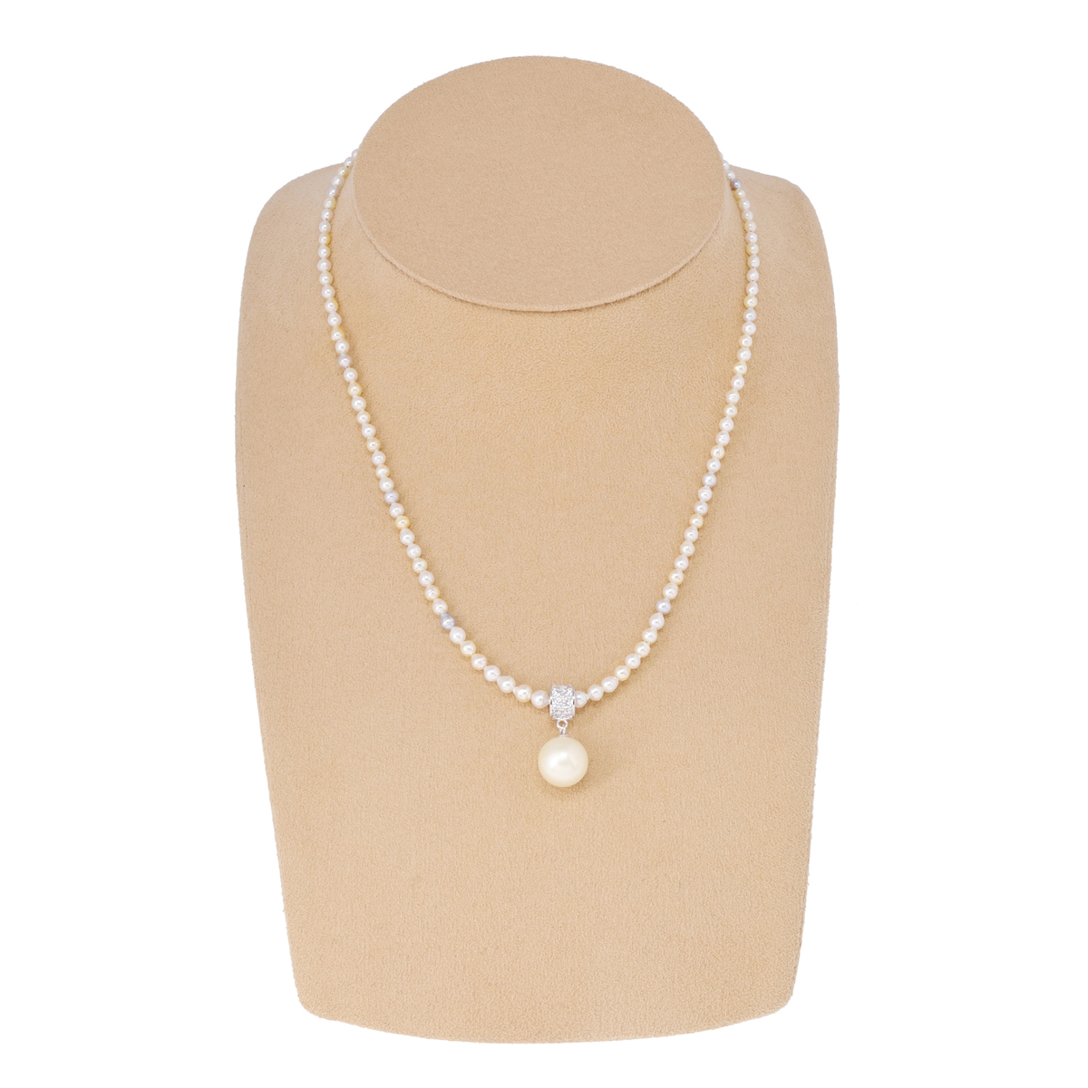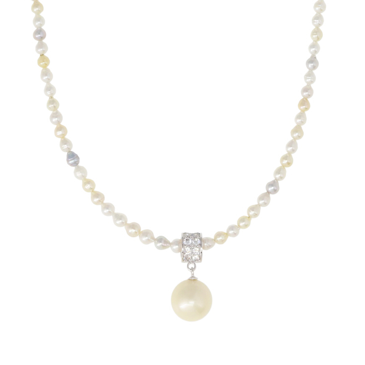 素材: [アコヤ真珠]3.0〜4.0mmUP バロック 貫通 [白蝶真珠]11.0mmUP ラウンド 芯立て/接着 1珠 [キュービックジルコニア]ラウンドカット 接着 10石 総重量(約) 9.6g 長さ(約) 43.0〜47.0cm バチカンの内径(約) 6.0×6.0mm 幅(約) 大:4.0mm 小:3.0mm 留具の形状 引き輪 アジャスターの有無 有 チェーンの取り外し 可 ヘッドの縦×横(約) 24.5×11.0mm(個体差有) [地金] シルバー925 [メッキ] シルバーカラーメッキ [付属品] 鑑別書 ■調色・着色等を施していない真珠をナチュラルカラーと呼んでいます ■素材の大きさ・形・色合い、製品のサイズは1点1点多少異なります 【日本製】