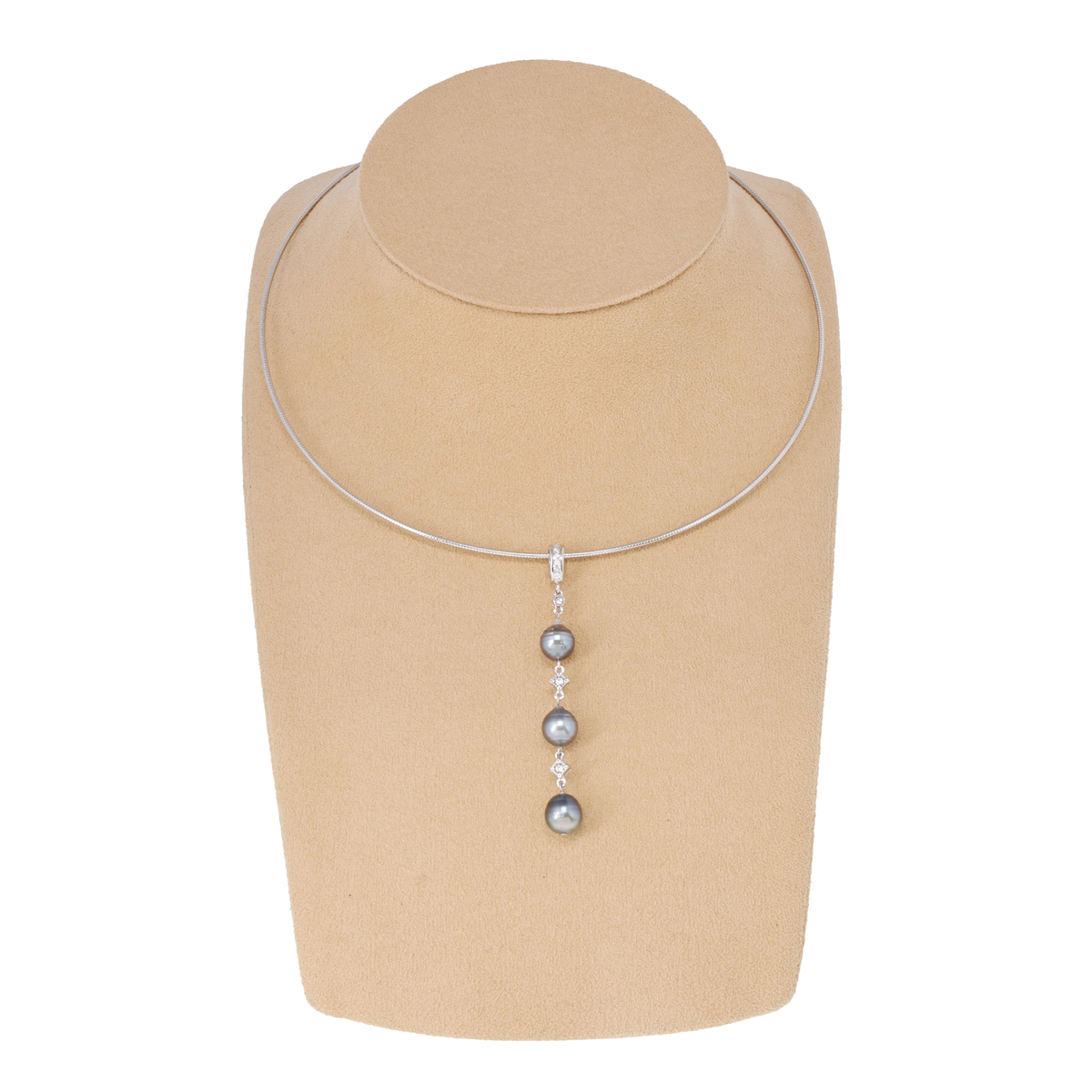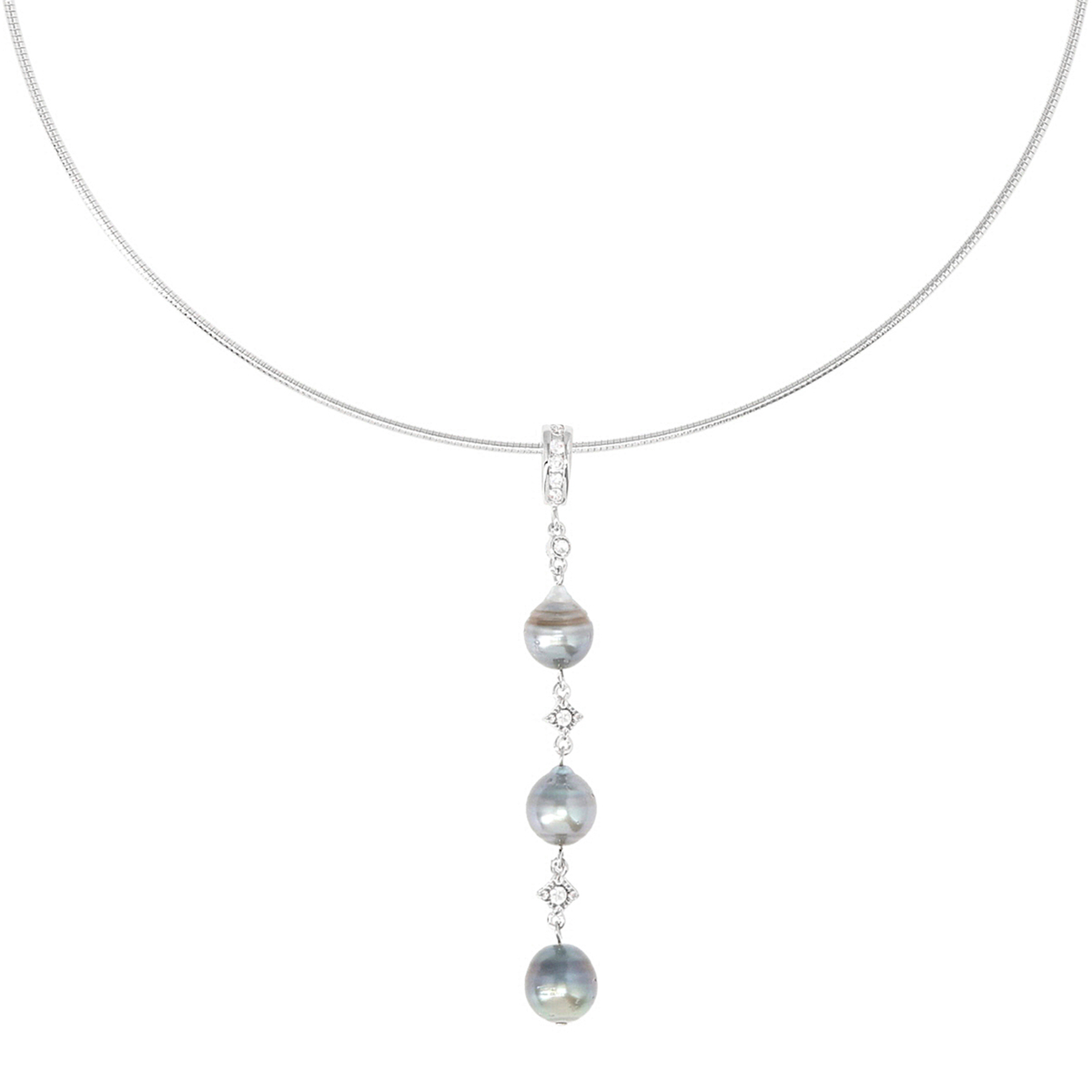 黒蝶真珠をあしらったオメガチェーンネックレス。黒蝶真珠ならではの深みある光沢が、動くたびにさりげなく存在感を放ちます