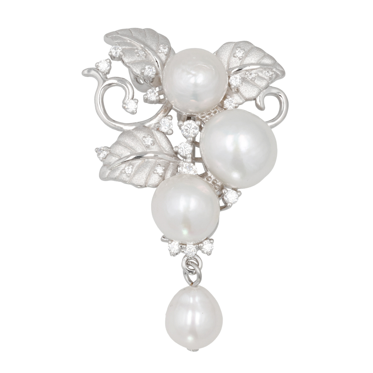 オーロラリップル真珠を果実に見立てた、表情豊かなブローチ。全体に散りばめたキュービックジルコニアが真珠の艶をいっそう引き立てます。下部のパーツは動きに合わせて軽やかに揺れ、装いにさりげない華やぎを添えてくれます