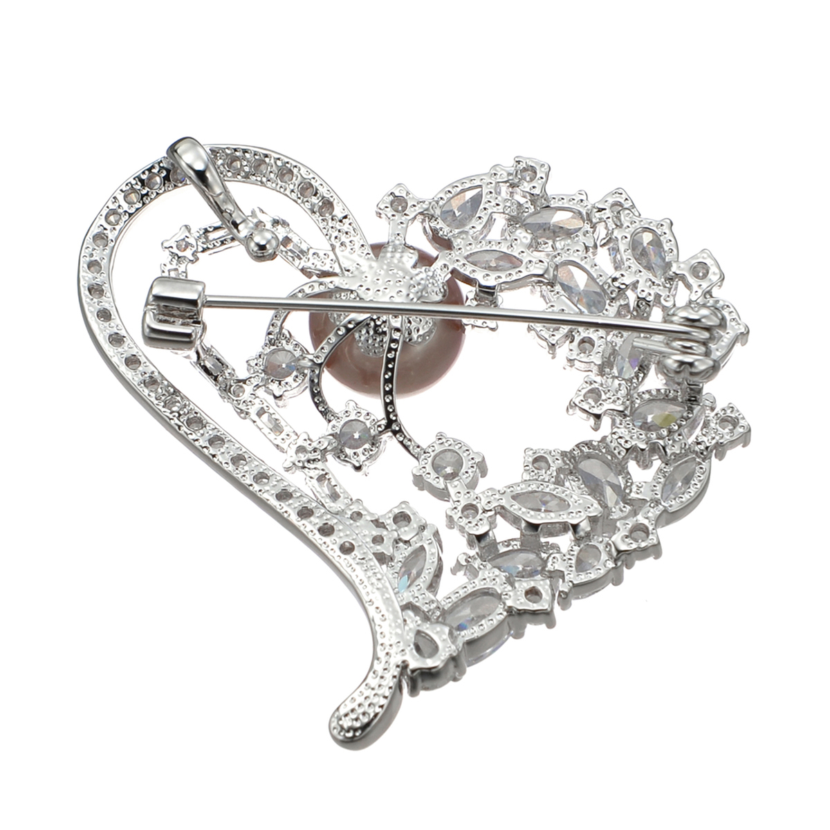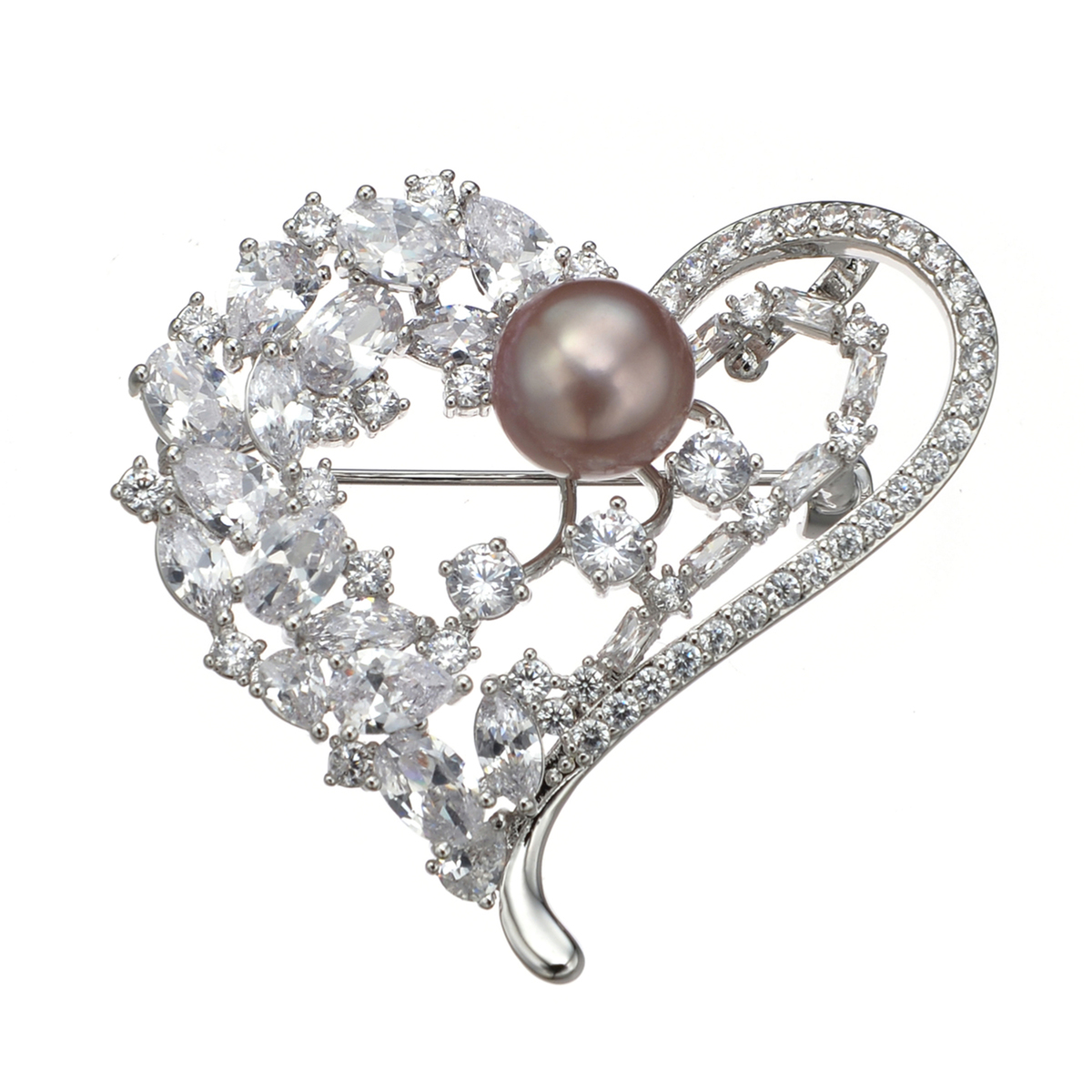 パープルカラーが美しいオーロラリップル真珠をメインに置き、マルチシェイプのキュービックジルコニアをふんだんにセッティング。モダンなハートデザインのブローチです