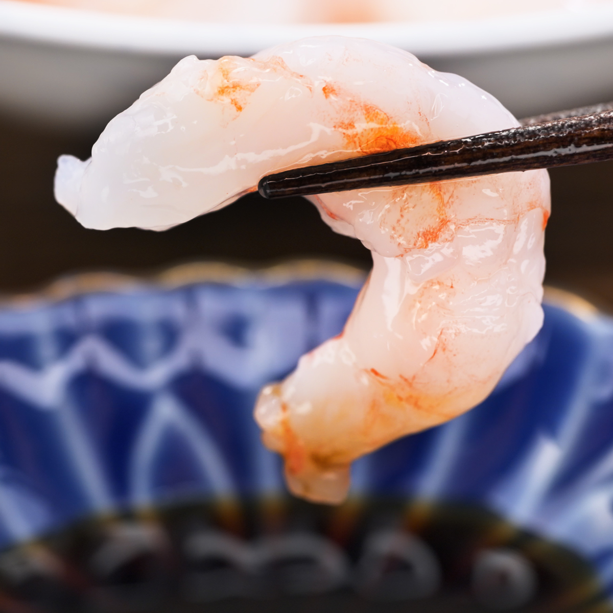 ヤマコ武田商店の武田社長が厳選した甘えびむき身。一尾ずつ丁寧に頭・殻・尾を取り除き、「ぐるむき」した可食部のみの仕様で、解凍するだけで刺身OKのクオリティです
