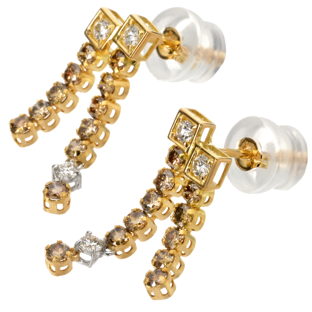シックなブラウンダイヤモンドにホワイトダイヤモンドをアクセントとして添えたピアスです。繊細に揺れるダイヤモンドのラインが横顔を印象的に演出します