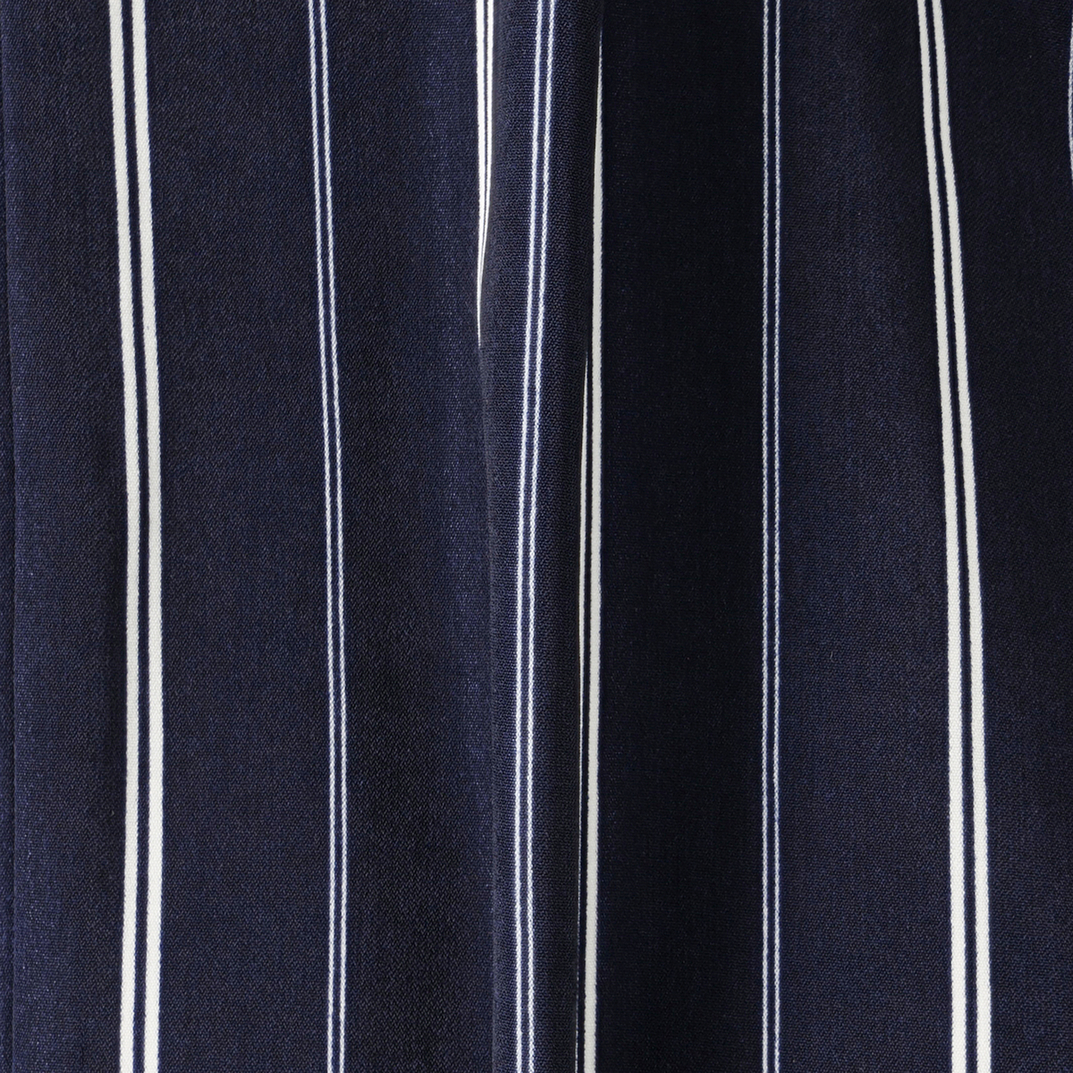 軽やかで落ち感のある素材に、細めのストライプ柄をあしらった生地。スタイリッシュな印象で、肌にまとわりにくいサラッとした質感が特徴です。程よい厚みと美しい落ち感、縦ラインを強調するストライプ柄が、体型をスッキリと見せてくれます