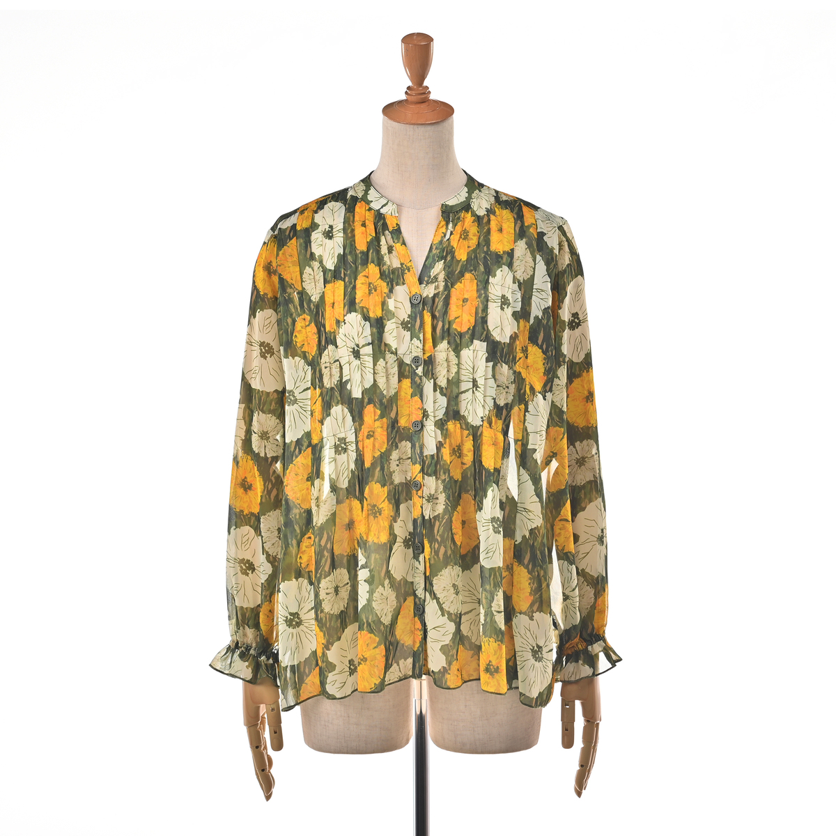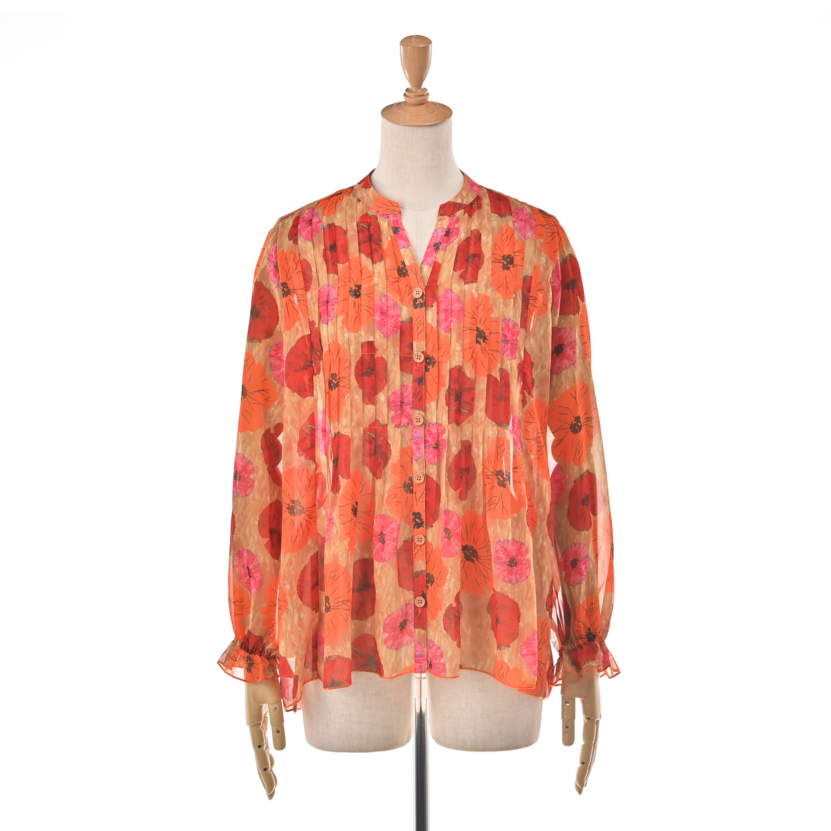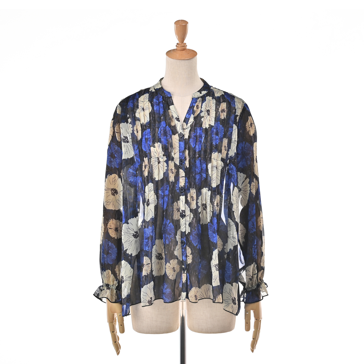 No. 754440 MORNMAGIE フラワープリント プリーツシアーブラウス